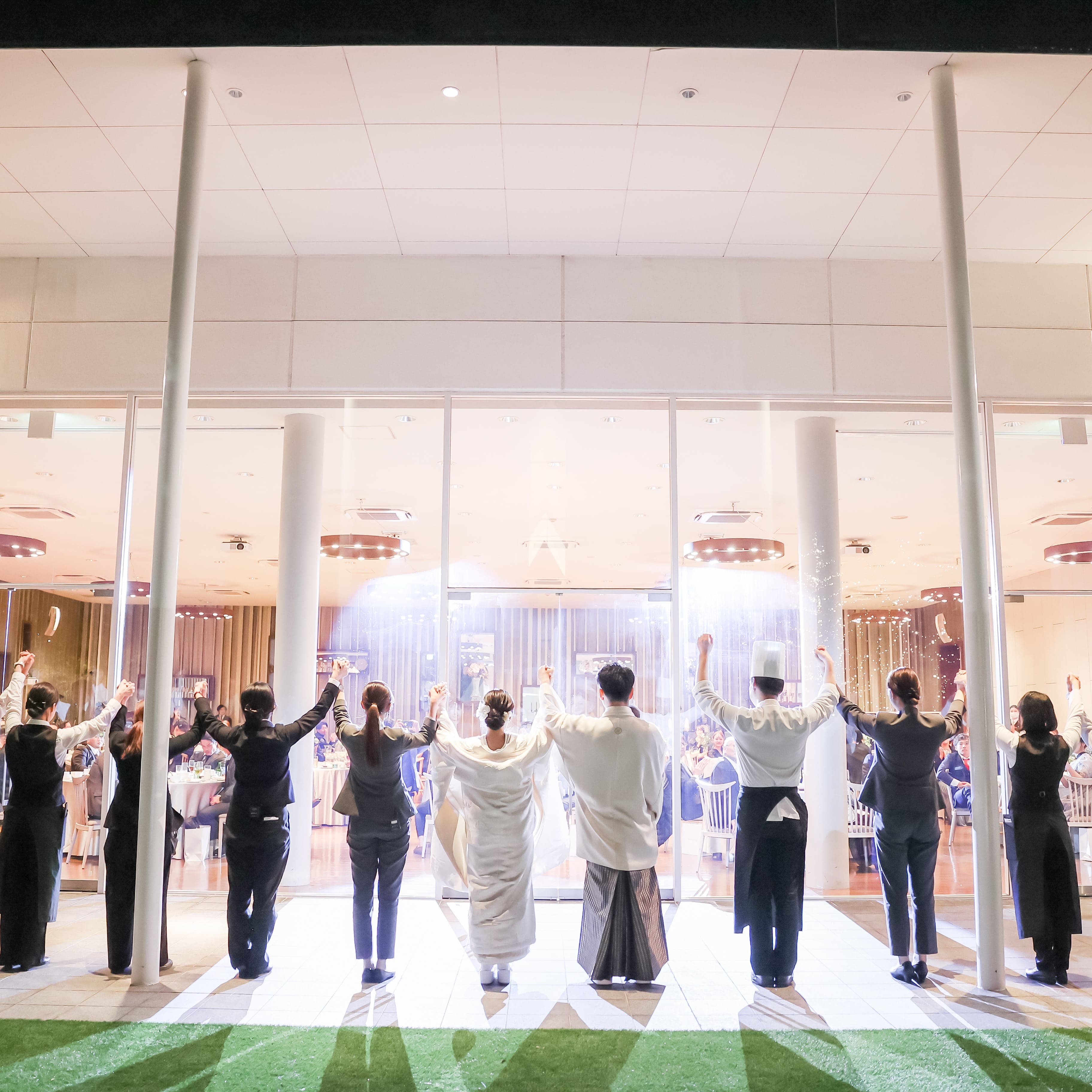 当日緊張するかな?と思っていましたが、今まで一緒に計画してくれたプロデューサーさんや他のスタッフの方、そして当日常に隣にいてくれたメイクさんとお話ししてると特に緊張する事もなく終始ニコニコで笑顔いっぱいの楽しい素敵な結婚式になりました。