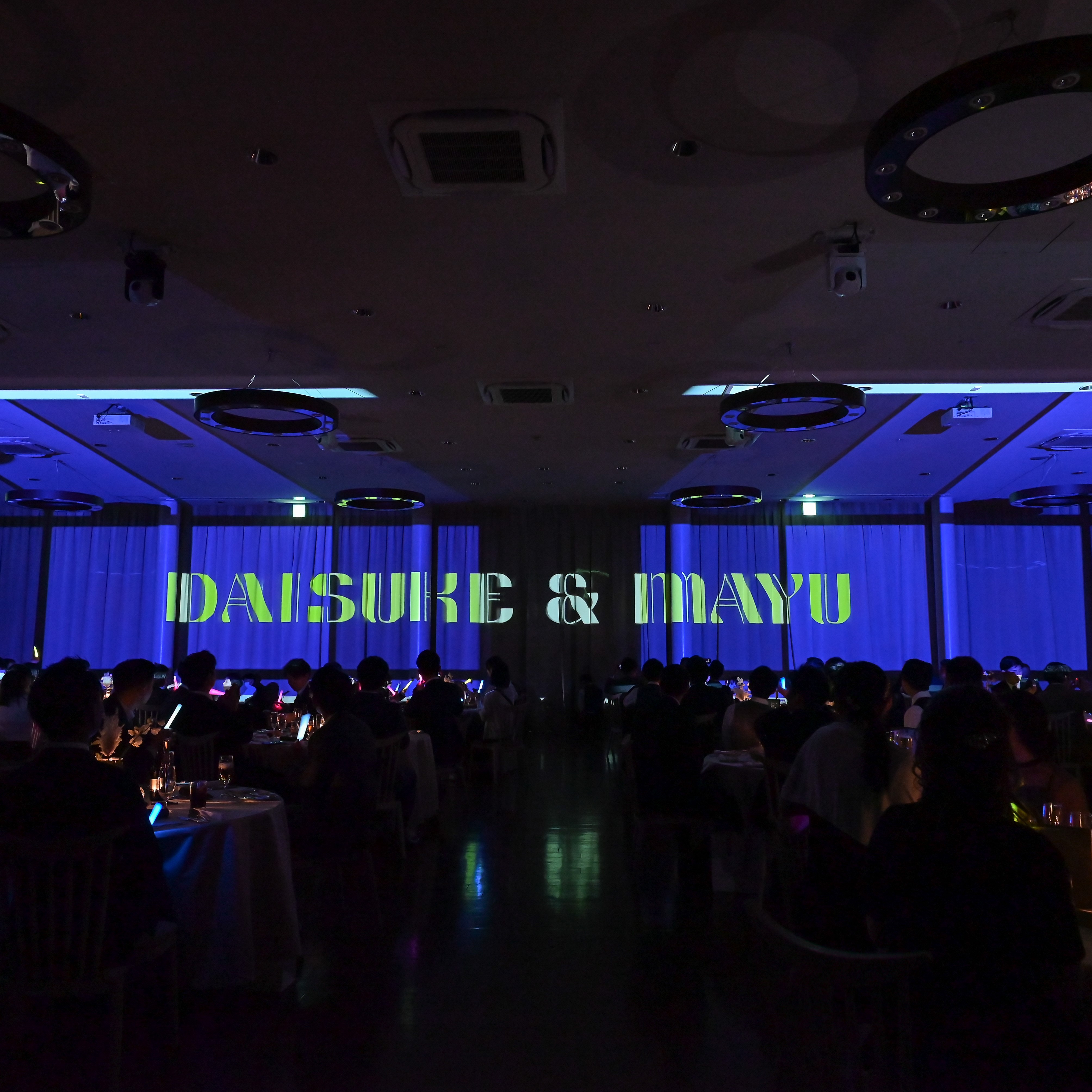 ・モーションカーテンをつかった入場式場を決めた時から絶対しようと思っていたモーションカーテンの演出を取り入れました。