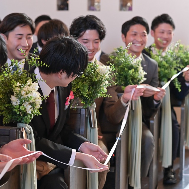 ゲストの方から繋いでもらったリレーで受け取った指輪を2人で交換することができて、縁・結びを感じることができました。