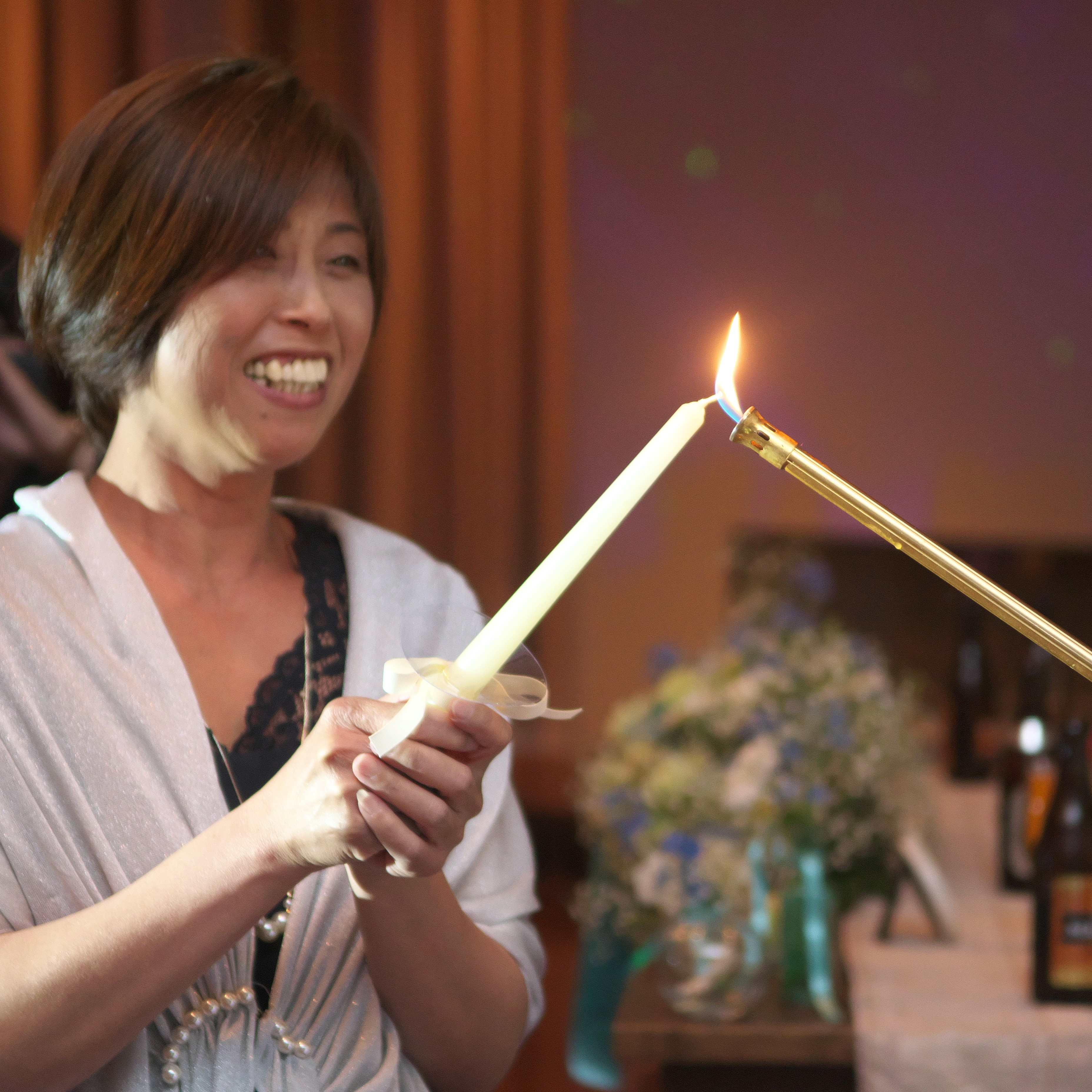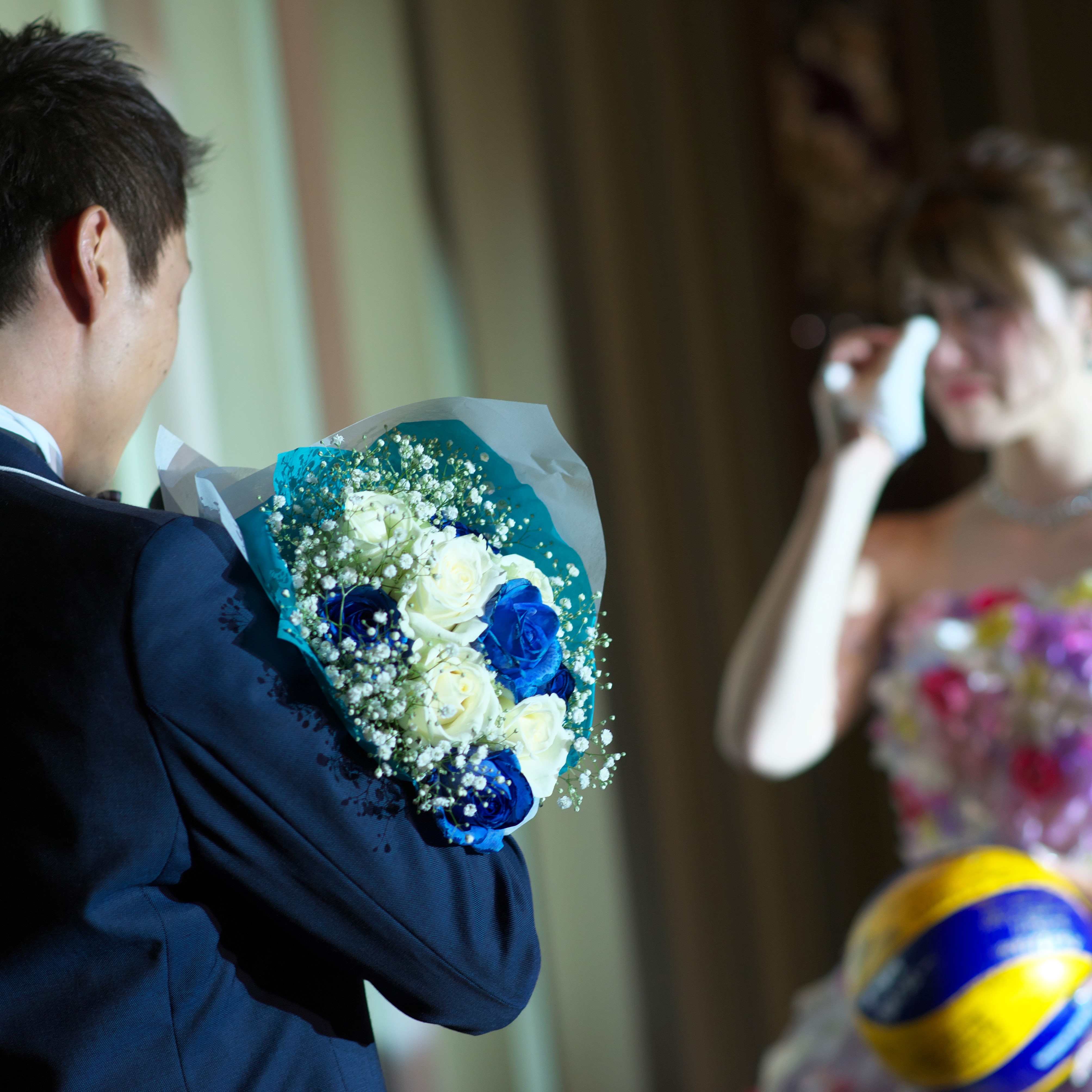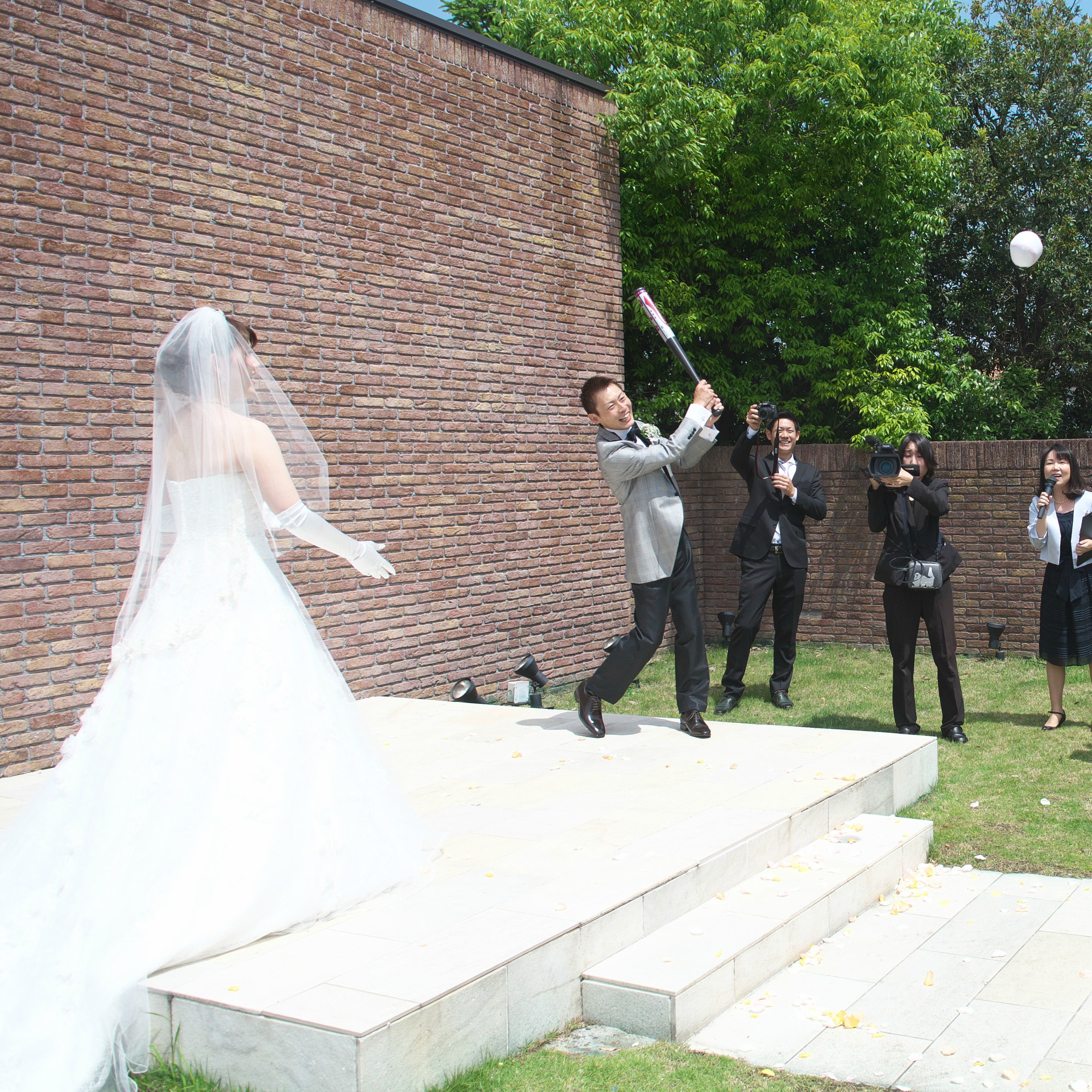 新郎が野球をしていたため、新婦がボールを投げ、打ってもらいキャッチした人がお酒のプレゼントで新婦側はブーケプルズでそのお花にもこだわりました。