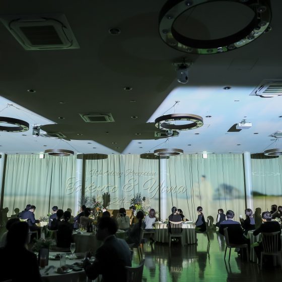 披露宴の再入場では、自分たちが重視していたモーションカーテンを利用し、自分たちオリジナルの映像を流すことができ、ゲストの方もサプライズ登場に喜ばれている様子でした。