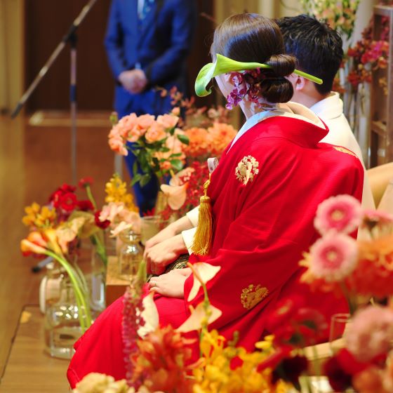 高砂の装花とブーケもたくさん考えてこだわり私の理想をフローリストさんが完璧に再現していただき当日お花達を見た時は本当に想像通りで嬉しすぎました!