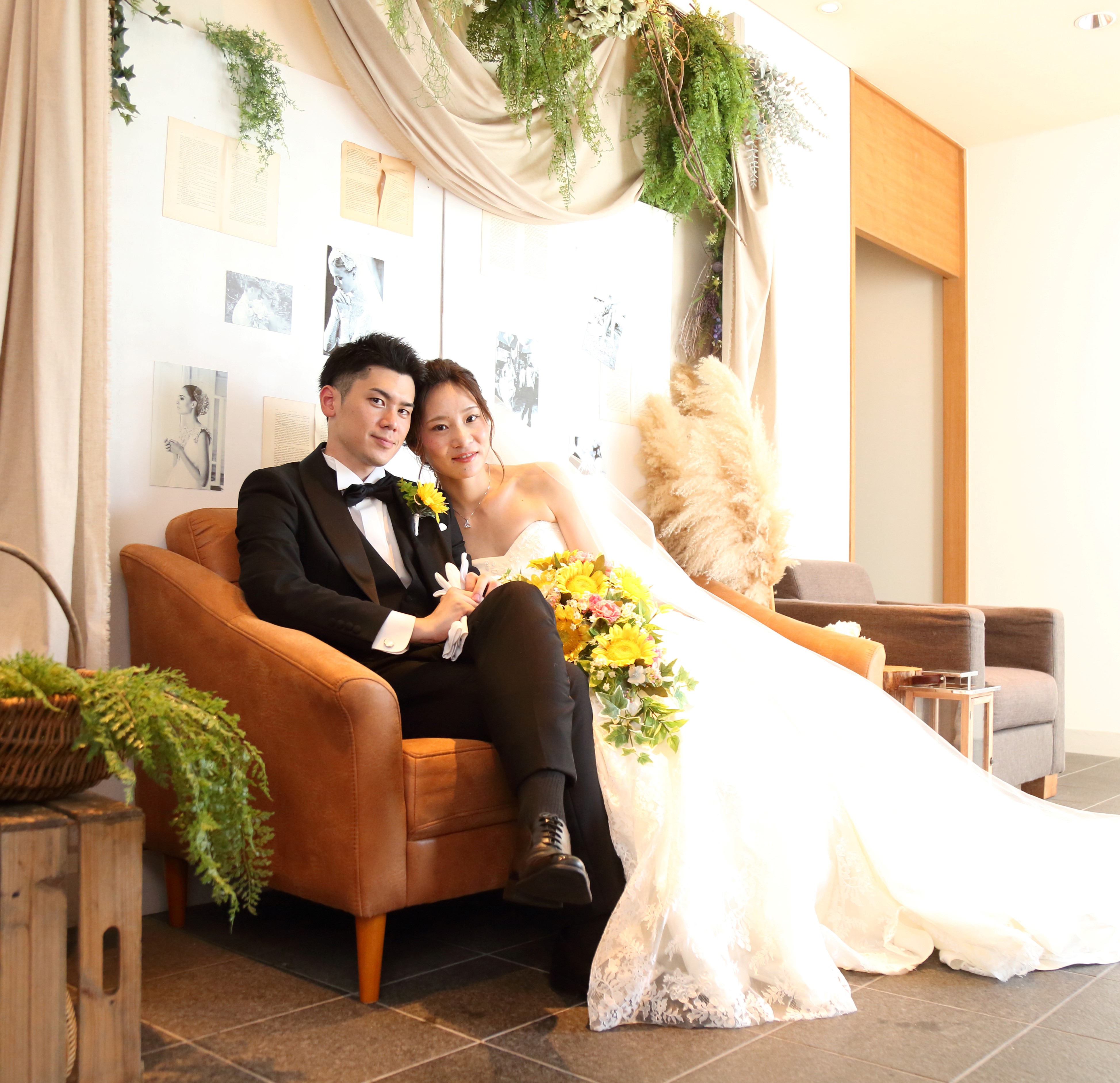 定番の音楽に加えて、私たちが好きな音楽を取り入れたので、音楽だけで気分が高まりました。当日誕生日の友人がいたので、ファーストバイトに加えてバースデーバイトをしたり大好きなおばあちゃんにサンクスバイトをしたりと自分たちだけでなく参列者が楽しめるような演出を考えました。テーブルラウンドの時に写真を撮るのではなく、再入場した後に、高砂に来てもらって各グループごとに写真を撮ることにしたので時間の短縮になったことや移動がしやすい空間を作ることができたので良かったです。