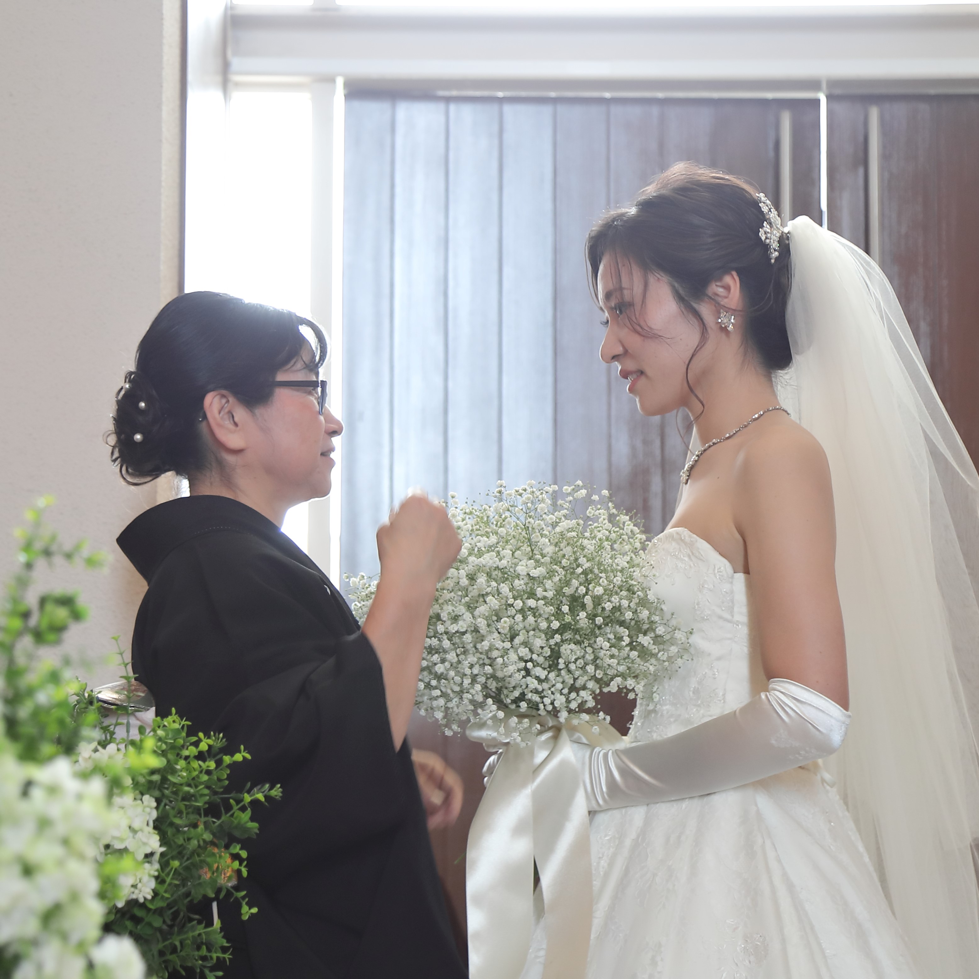 私たちは午後からの結婚式だったので、朝はゆっくり準備することができました。ブリーズレイに到着してウェルカムスペースを準備しているときまでは打ち合わせに来ているような感覚でした。いざヘアメイクをして衣装に着替えてチャペルに行った時に本当に当日を迎えることができたんだと感じました。挙式中は最初緊張したけど終始笑顔で執り行うことができました。特にドロップ&フライはとても感動しました。大人から子供まで楽しめる演出になったと思います。披露宴は私たちの好きなものをたくさん詰め込みました。素敵なガーデンで出来る演出はないかなと考え、私たちはケーキ入刀をガーデンで行いました。貸し切り会場だからできる演出だったと思います。再入場の時の歓声は今でも忘れることができません。披露宴中は緊張することなく常に自然体でいることができました。披露宴が終了し、レーザー演出後に再度カーテンが開き、スタッフの方々と一緒にオールキャストフィナーレを行いました。参列者の反応を見て、もう一度入場してしまいそうでした。参列者から「とてもいい式だったよ」と言ってもらえてとても嬉しかったです。何より、両親から「二人らしい結婚式だったね。」と言ってもらえたので結婚式を挙げてよかったと思いました。ブリーズレイで私たちらしい、好きなことをたくさん詰め込んだ結婚式を挙げることができて、とてもいい経験ができました。プランナーの浅野さん、樋高さんはじめ、スタッフの方々にはとても感謝しています。