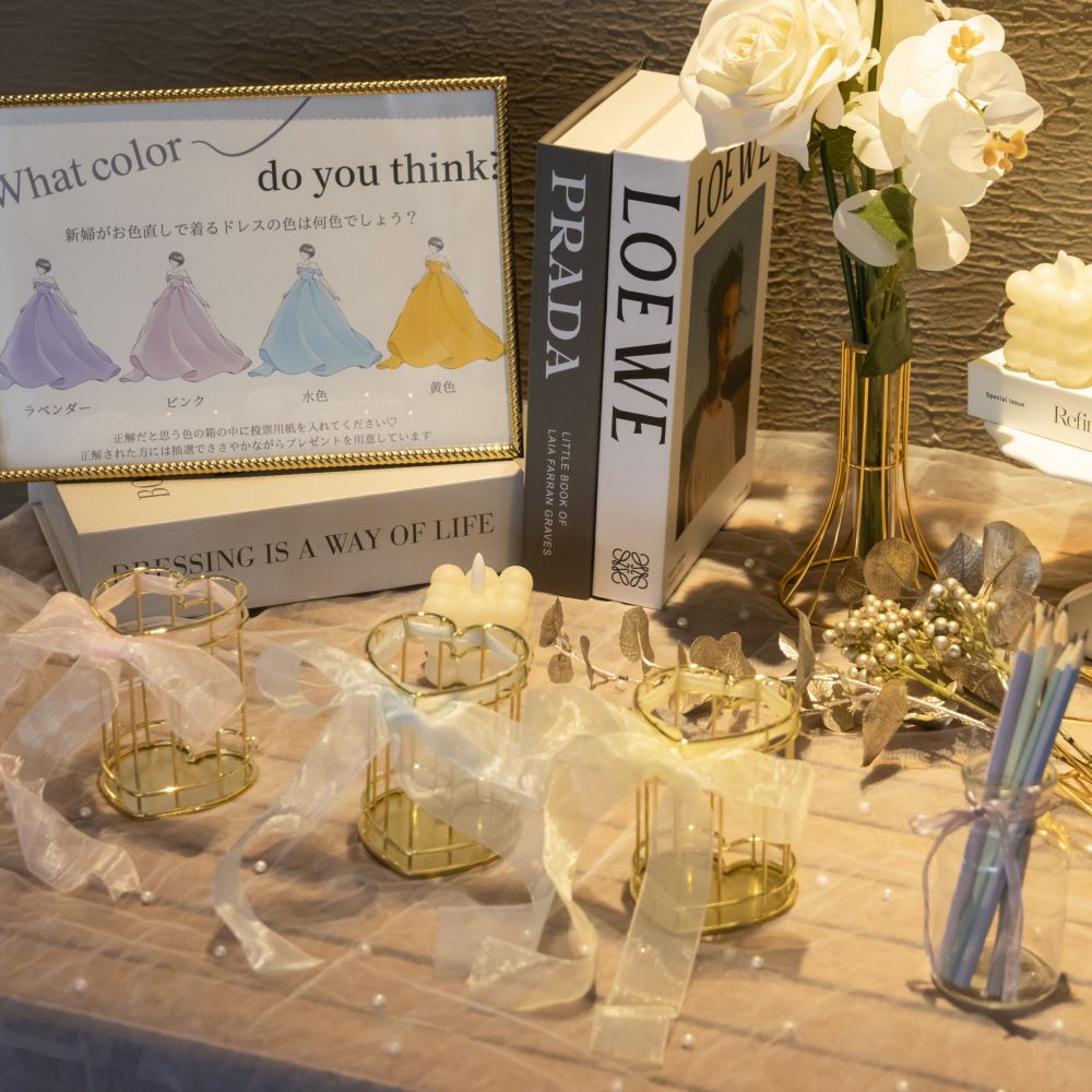挙式でのサプライズリングボックスや、ブーケプルズ、披露宴でのサンクスバイトやドレス色当てクイズ、兄弟との中座など
