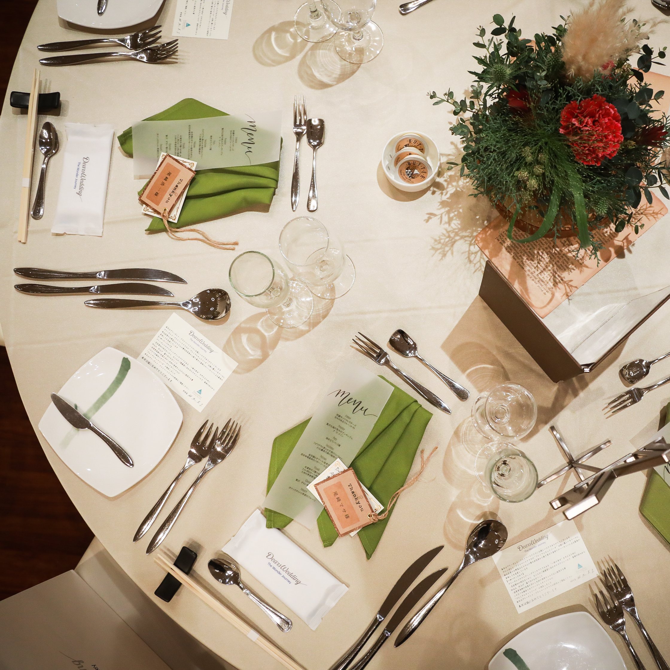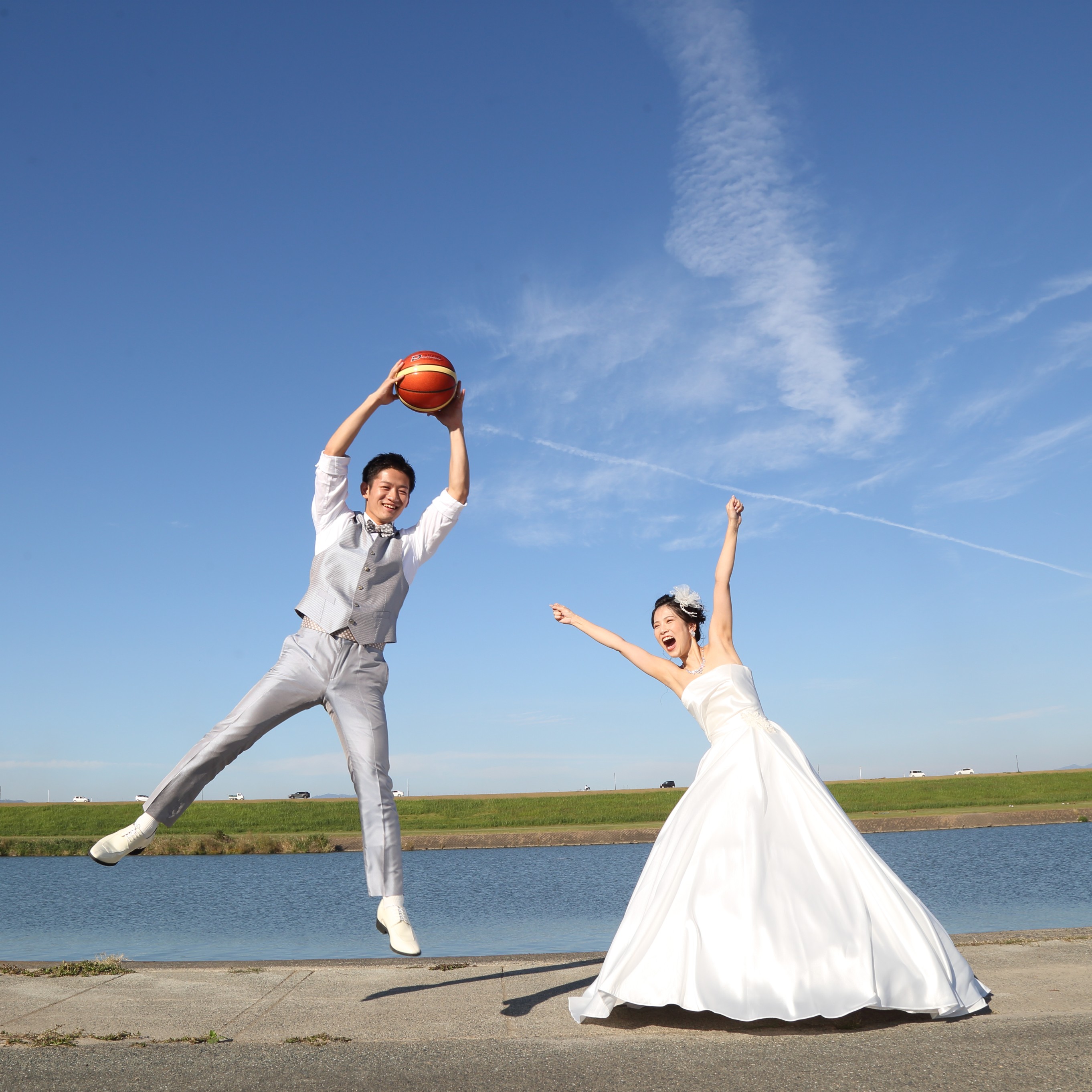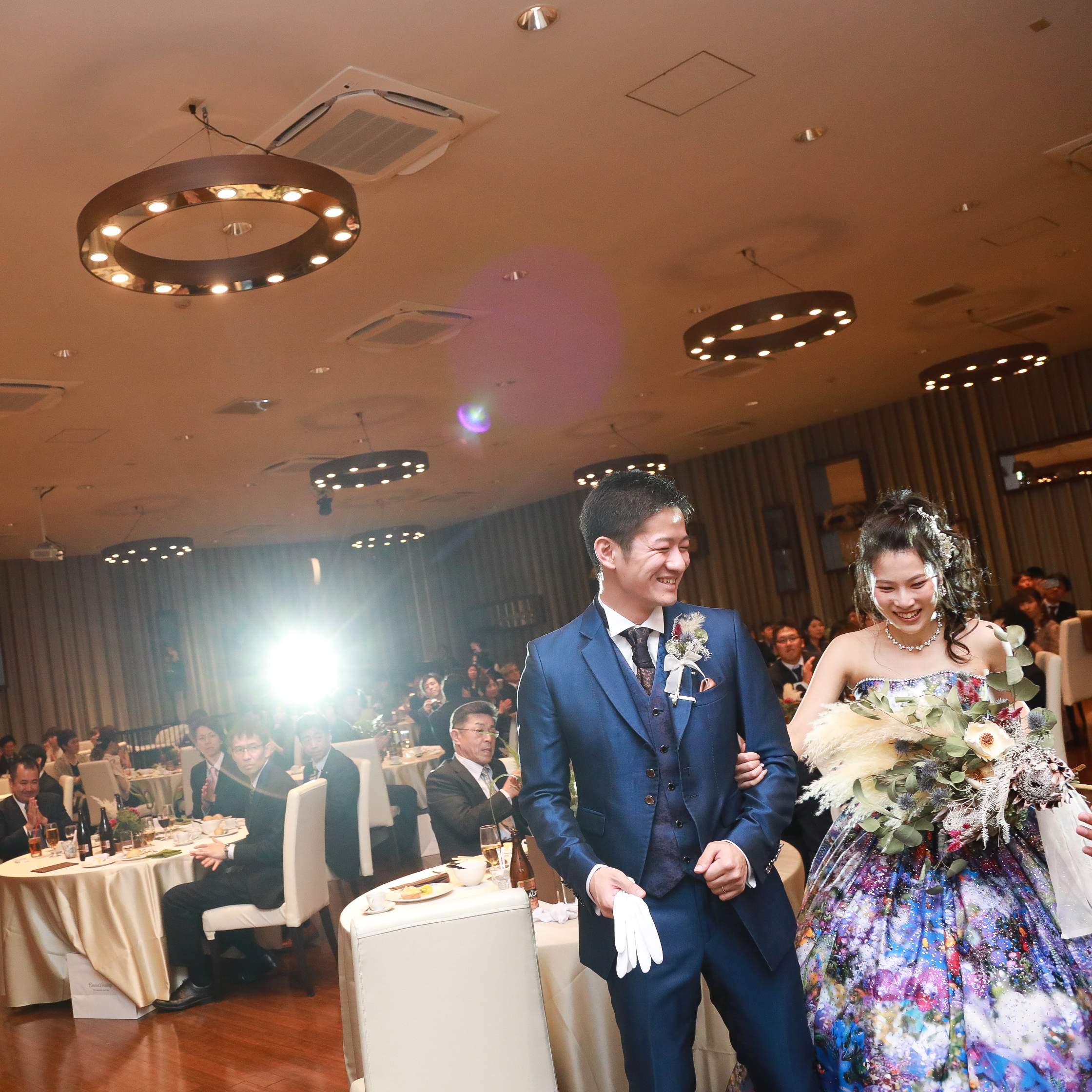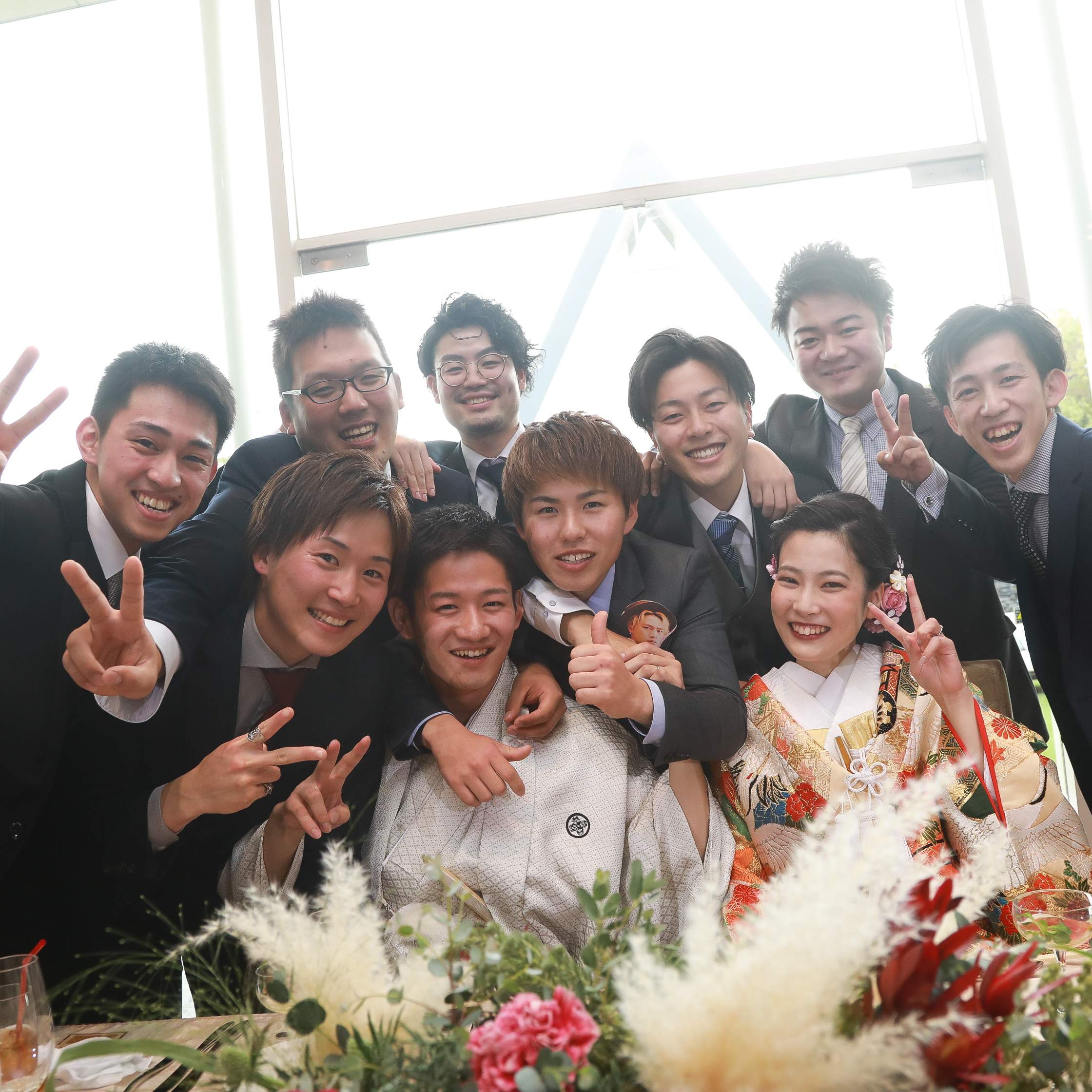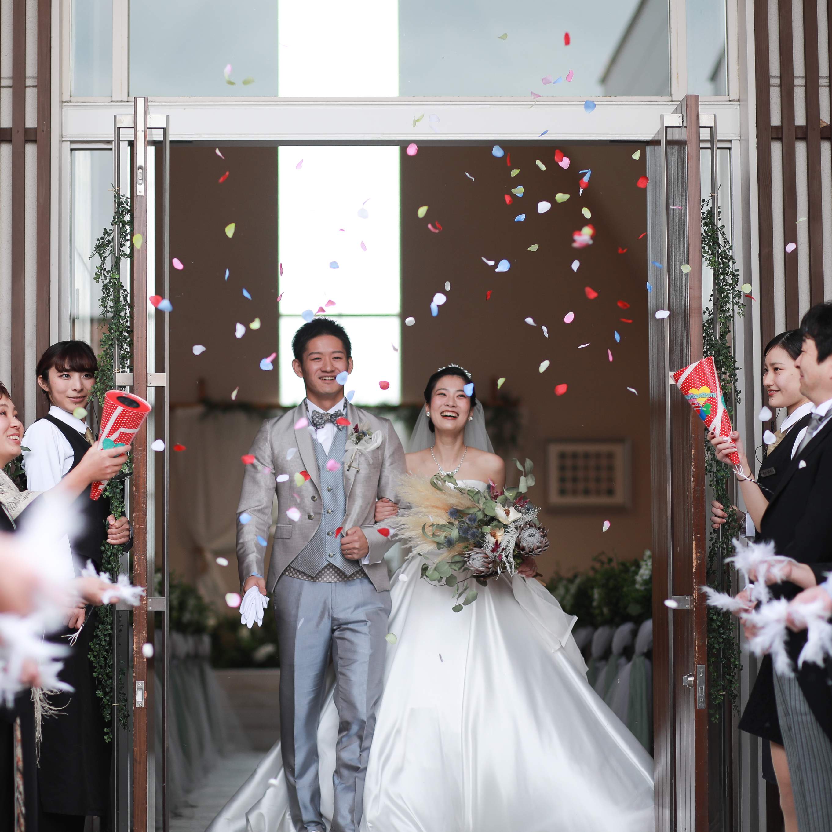 朝からの結婚式だったため、金曜日のお昼から夜まで準備しました。当日は朝早くから式場入りでしたが、ブライダルルームへ入ると気持ちが高まり、興奮したのを覚えています。次々とゲストの皆さんが到着し、声が聞こえてきて、ニヤケがとまりませんでした。やっとこの時がきた!と皆さんに会えるのをすごく楽しみにしていたからです。挙式は、とても緊張しましたが、新郎が入場するとゲストの皆さんの笑い声に包まれ、そのおかげで和みました。笑顔で挙式を終え、こだわったフェザーシャワーでは、事件が起りました。新郎の頭が鳥の巣状態になり、爆笑のひと時でした。ブーケトスもブロッコリートスも盛り上がりとてもたのしかったです。披露宴は、入場からこだわったため、皆さんの反応が気になりました。後からMovieを見返すと『どこどこ?』っという声が多く、やってよかったなと思い出に浸ってます。ケーキ入刀ではなくカラードリップで新鮮さをだし、サンクスバイトでは、高校のバスケ部にサプライズをしました。総勢9人でうまくできるか不安だったけど、みんな美味しそうに食べてくれたので嬉しかったです。また、一つ目中座は、サプライズで兄弟を自分たちで呼んだり、二つ目の中座はレーザーで友人を呼び出しました。とてもびっくりしたようでサプライズした甲斐がありました。披露宴中は、お互い自然体で入れ、自分たちらしく、笑顔で楽しめたのでとても満足しています。ゲストの皆さんからもとってもいい結婚式だった、今までで1番よかった、2人の思いが伝わったなどと沢山のお褒めの言葉をいただきました。そして、樋高さん、最初から最後まで私たちのために、ご尽力頂きありがとうございます。毎回最後になるで遅くまで残って、納得のいくように熱心にしてくださったおかげで大変満足のいく結婚式ができました。また、スタッフの方々、全ての人に感謝の気持ちでいっぱいです。本当にありがとうございました。