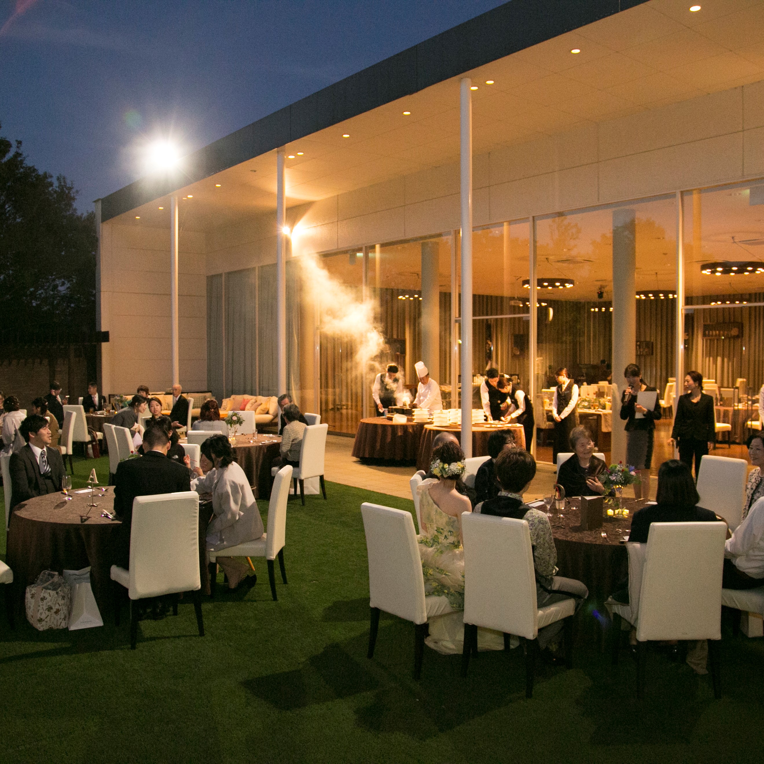夕暮れどきにガーデンに移動し、シェフにメインディッシュをその場で調理してもらった事もとても好評でした。