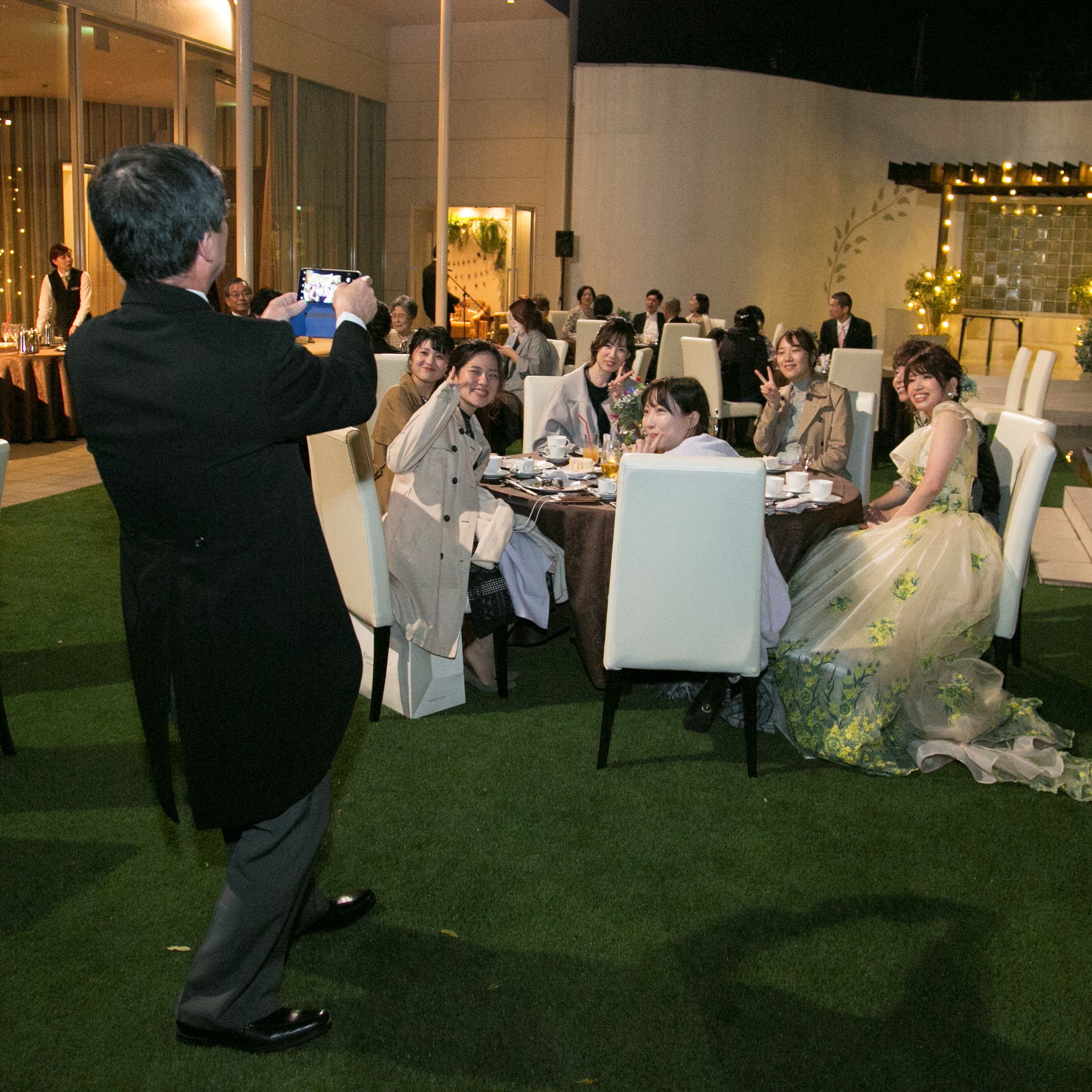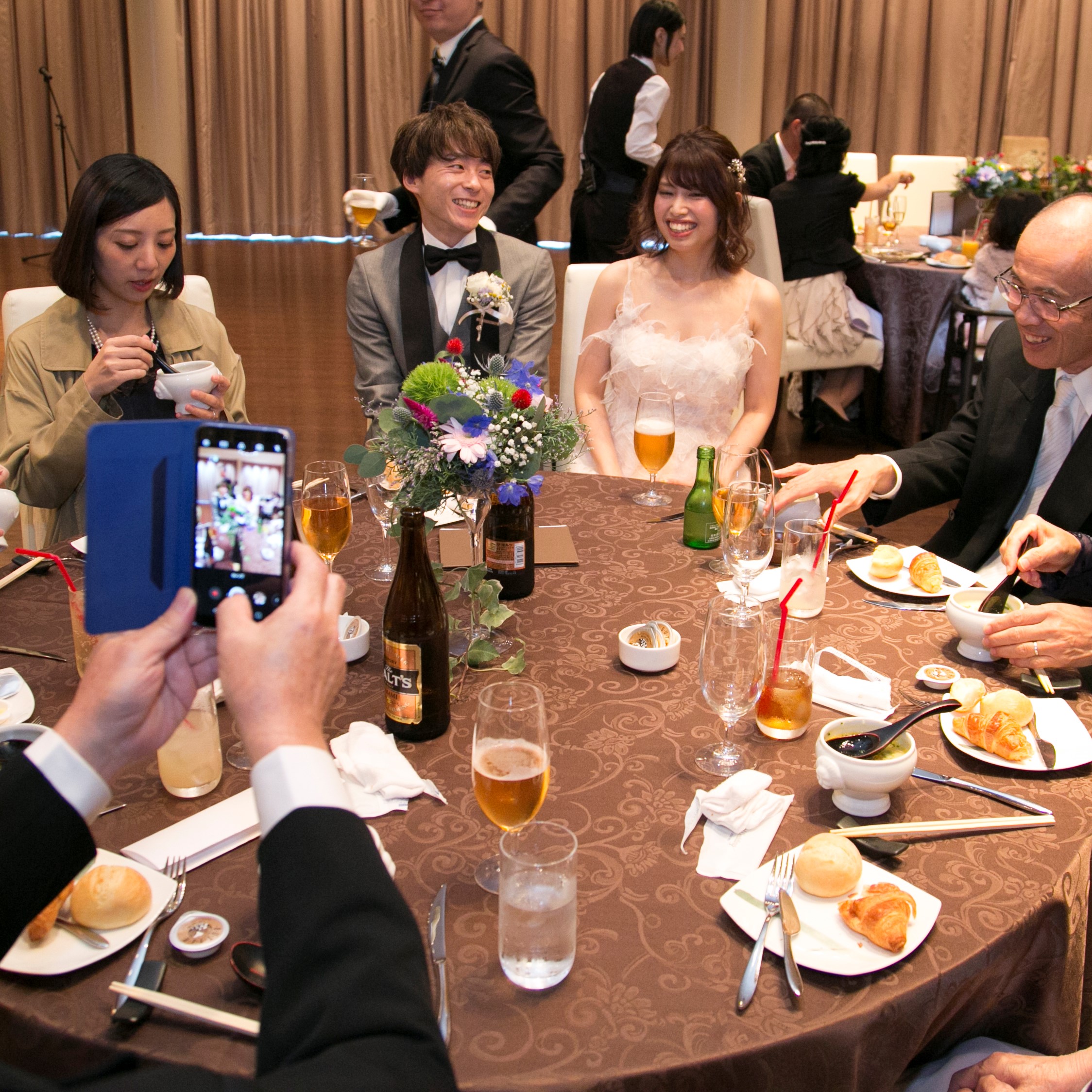 披露宴中はゲストに美味しい料理を楽しんでもらいたかったので、ゲストの方々ではなく2人が動き各テーブルを回りお話をするようしました。