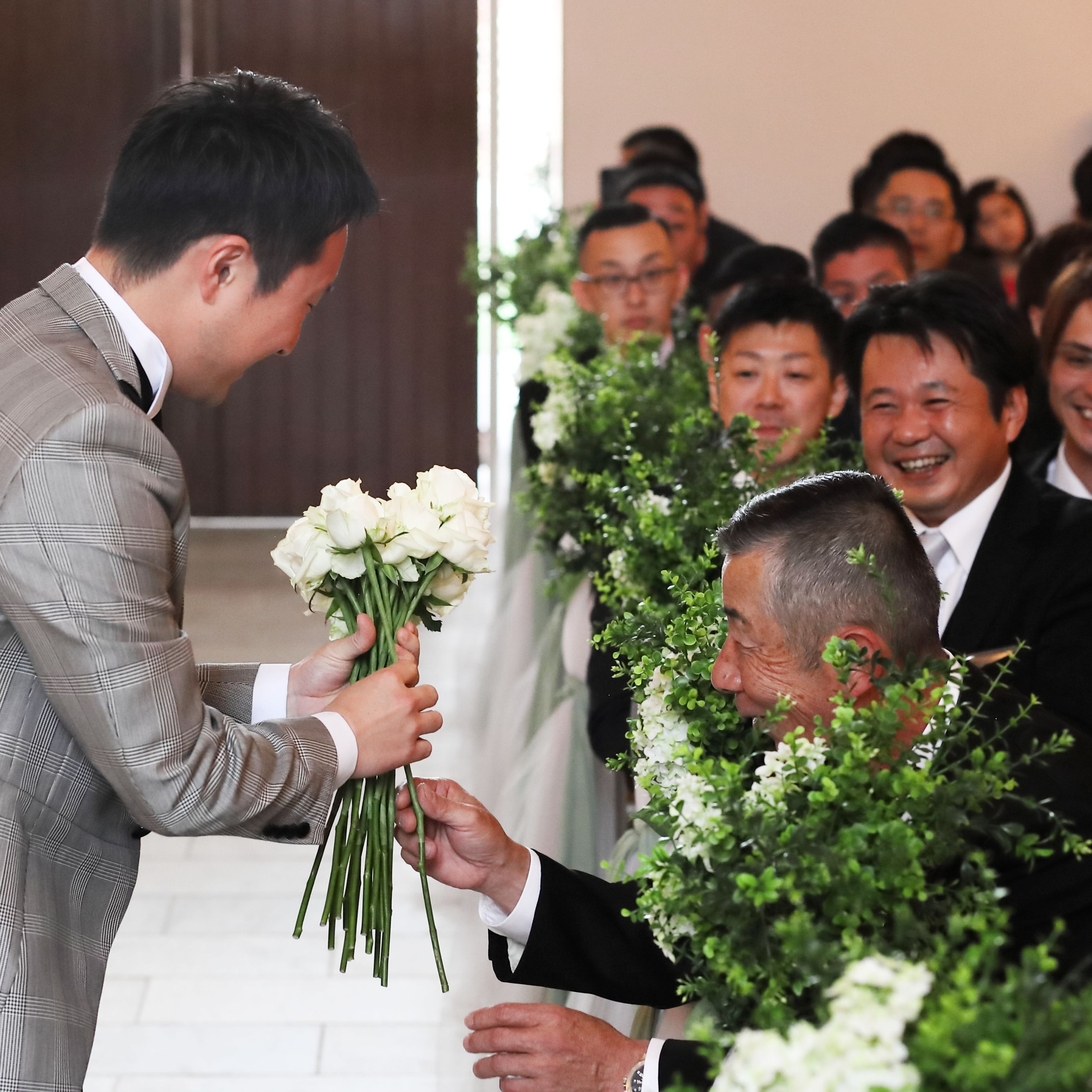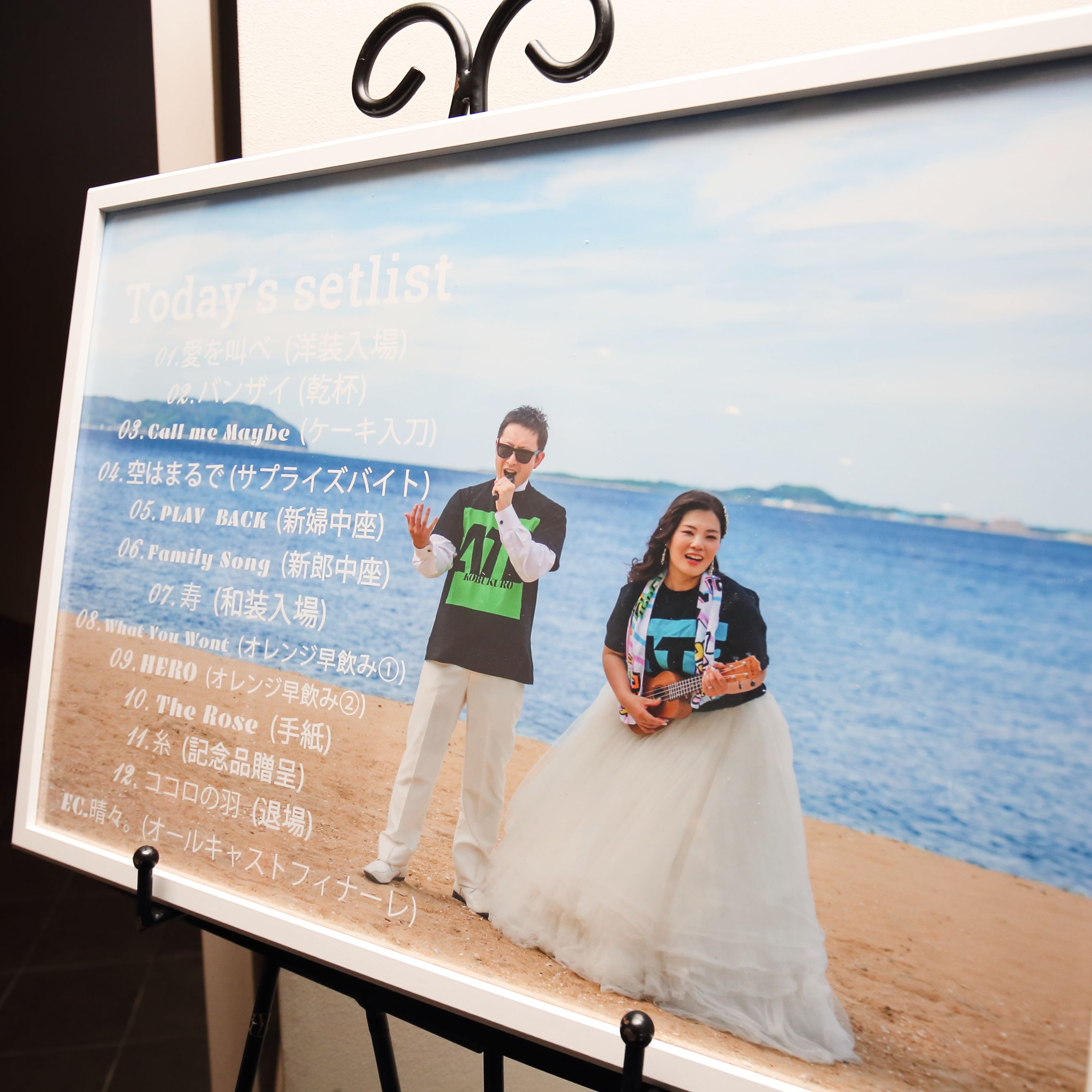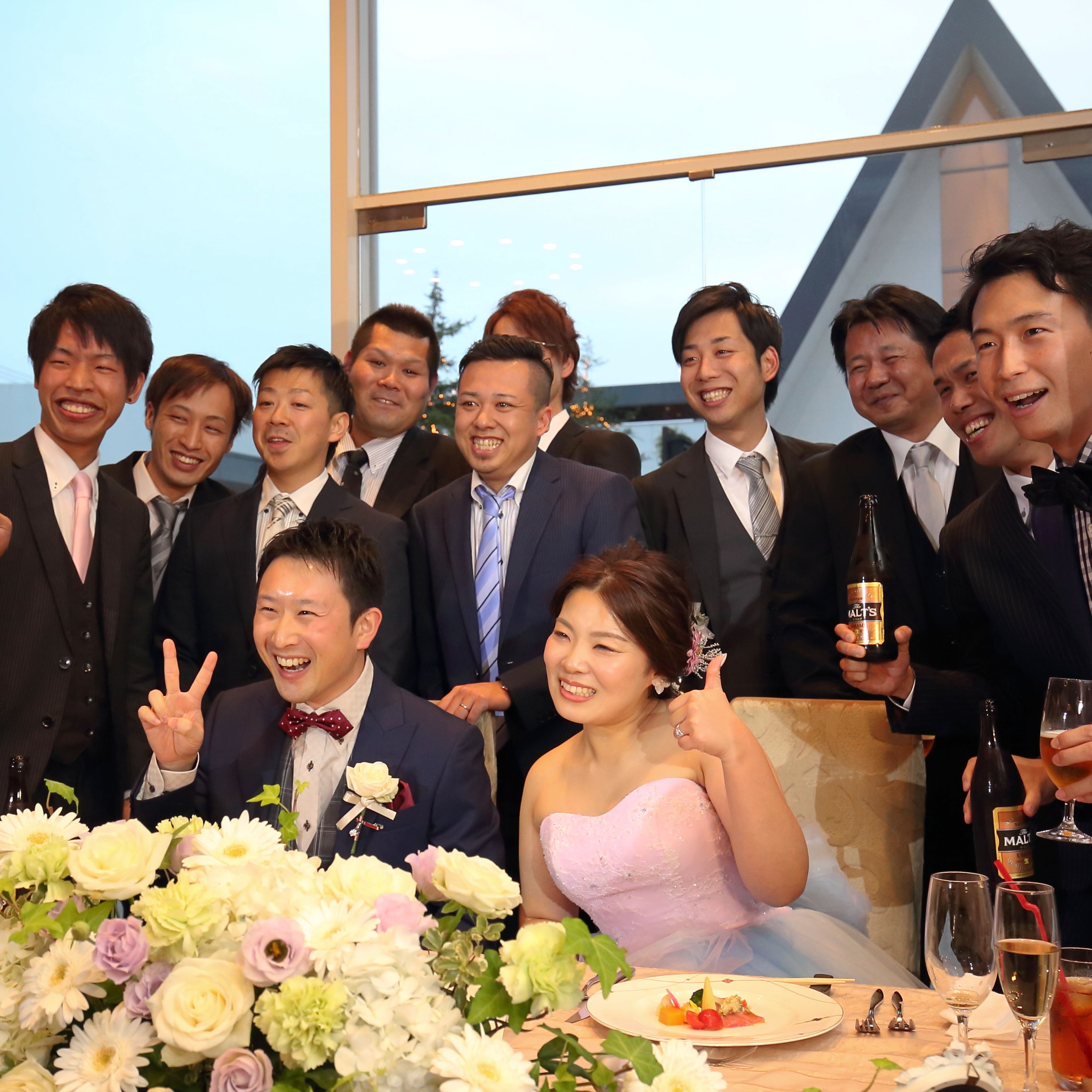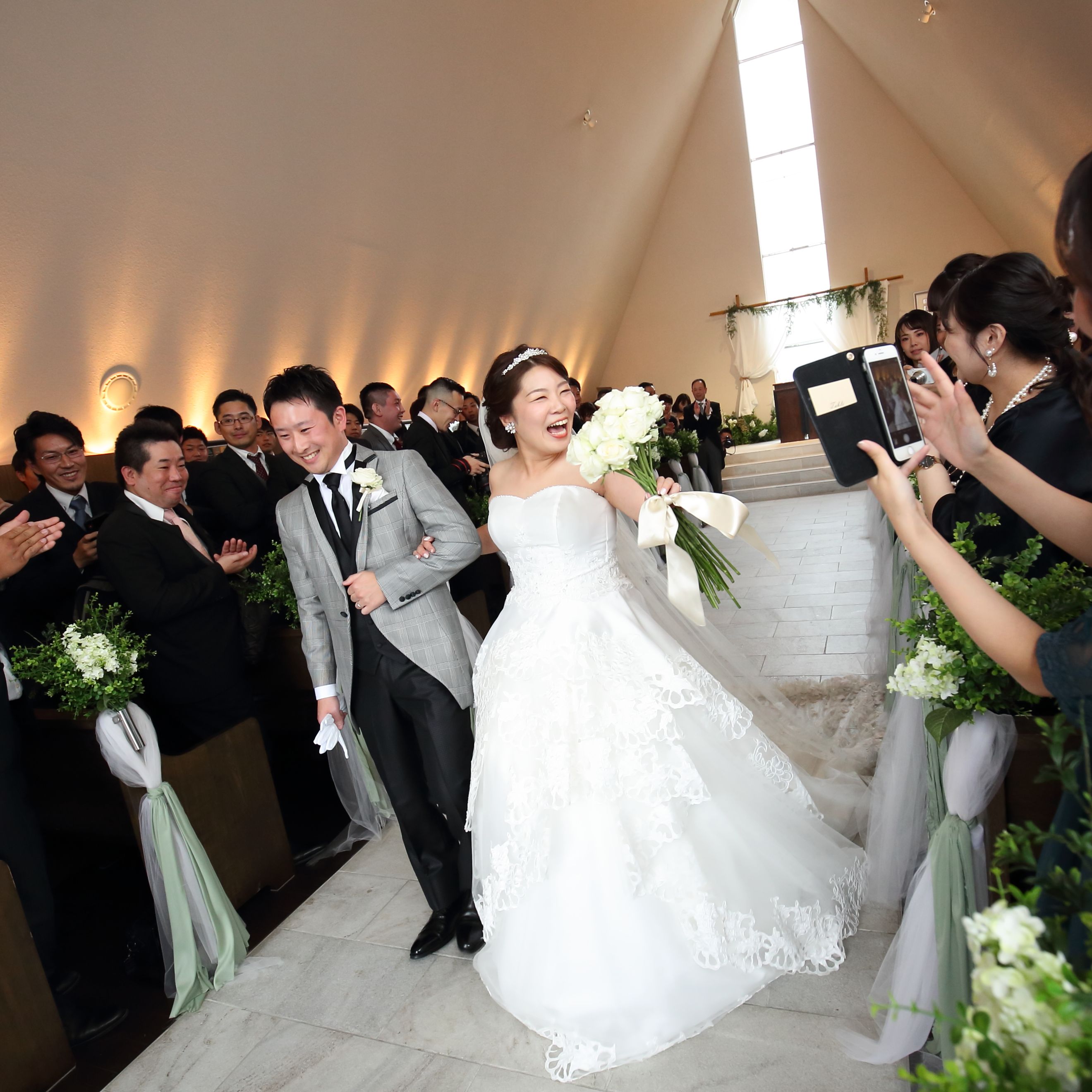「今まで体験したことのない同窓会のような結婚式」これが私達の結婚式のメインテーマでした。ドレスの色クイズやキャンドルサービスなどオーソドックスな演出は敢えて避け、今まで誰もしたことのないような演出にこだわり続けました。判断基準はズバリ「ゲストの意表を突けるかどうか」(笑)。プランナーさんも様々なアイディアを出してくださったので、【挙式】ブーケ・ブートニアセレモニー、クロージング・キス、ブロッコリートスの代わりにゴムパッチン【披露宴】オレンジジュース早飲み対決、紙飛行機を使った退場、プチギフトはうまかっちゃん…などなど、私達の結婚式でしか味わえない演出をてんこ盛りにしました。最後の見送りの際、ゲストの方から「ずっと楽しかった」と言っていただき、それまでの一年間の準備期間が全て報われたように感じました。