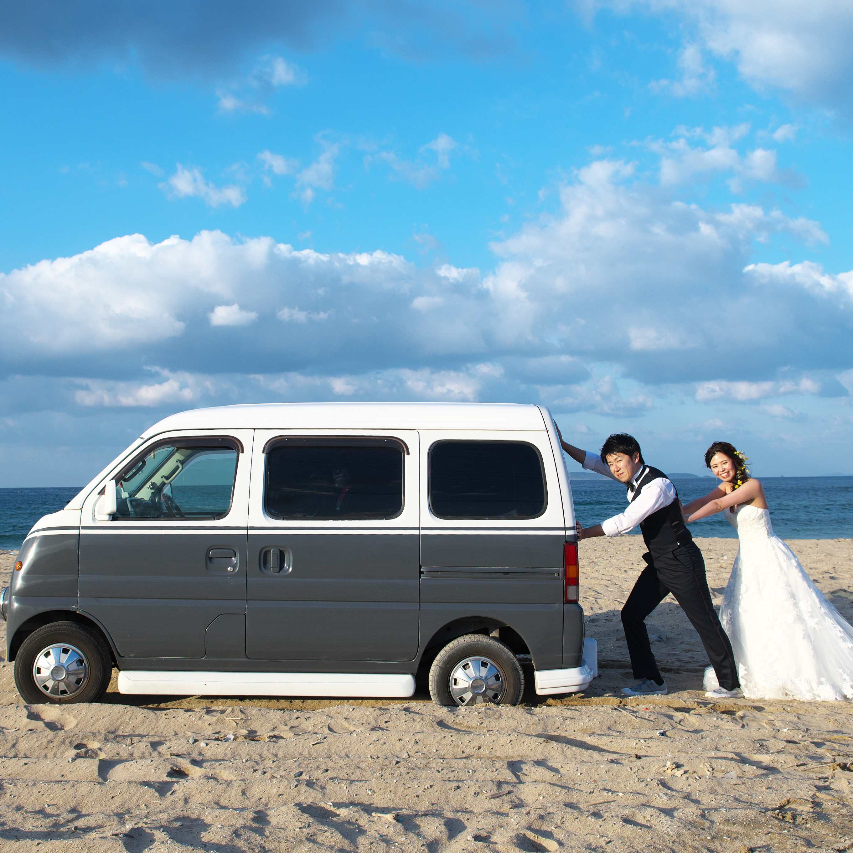 雨女の新婦と晴れ男の新郎。天気予報は雨のち曇りだったのですが、当日は雲ひとつない快晴に恵まれました。