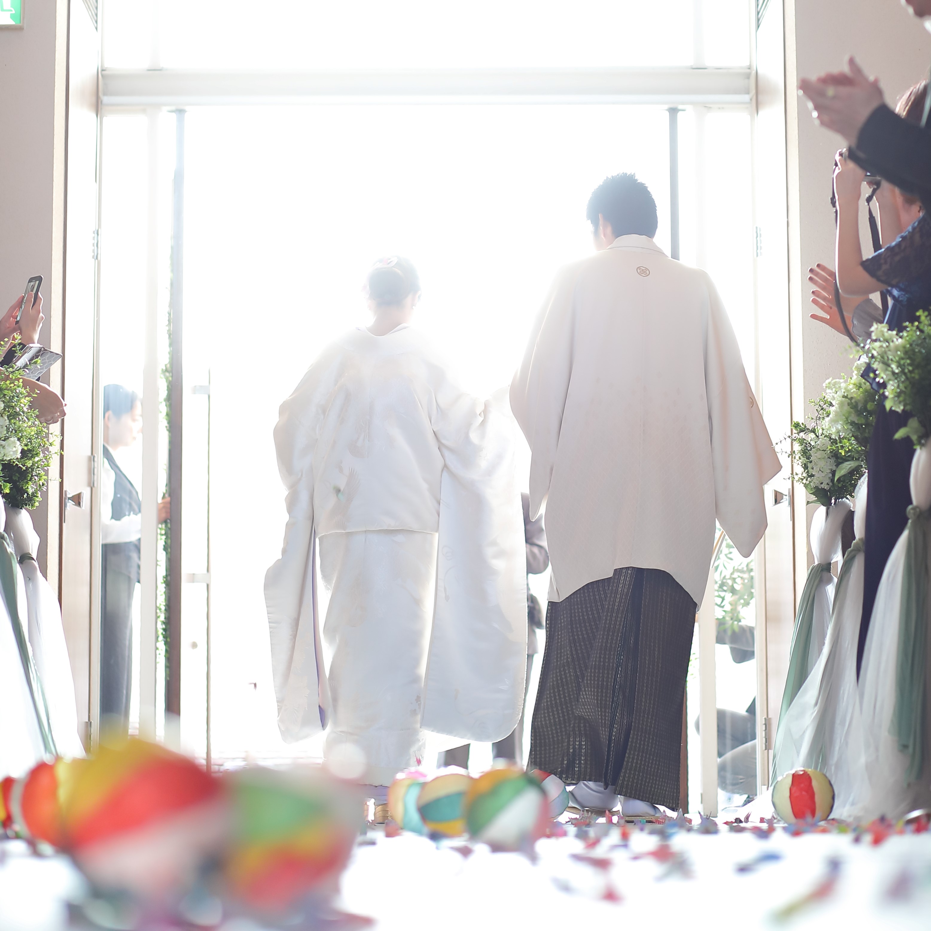 私たちはチャペルで、白紋付×白無垢で和装人前式にしました。