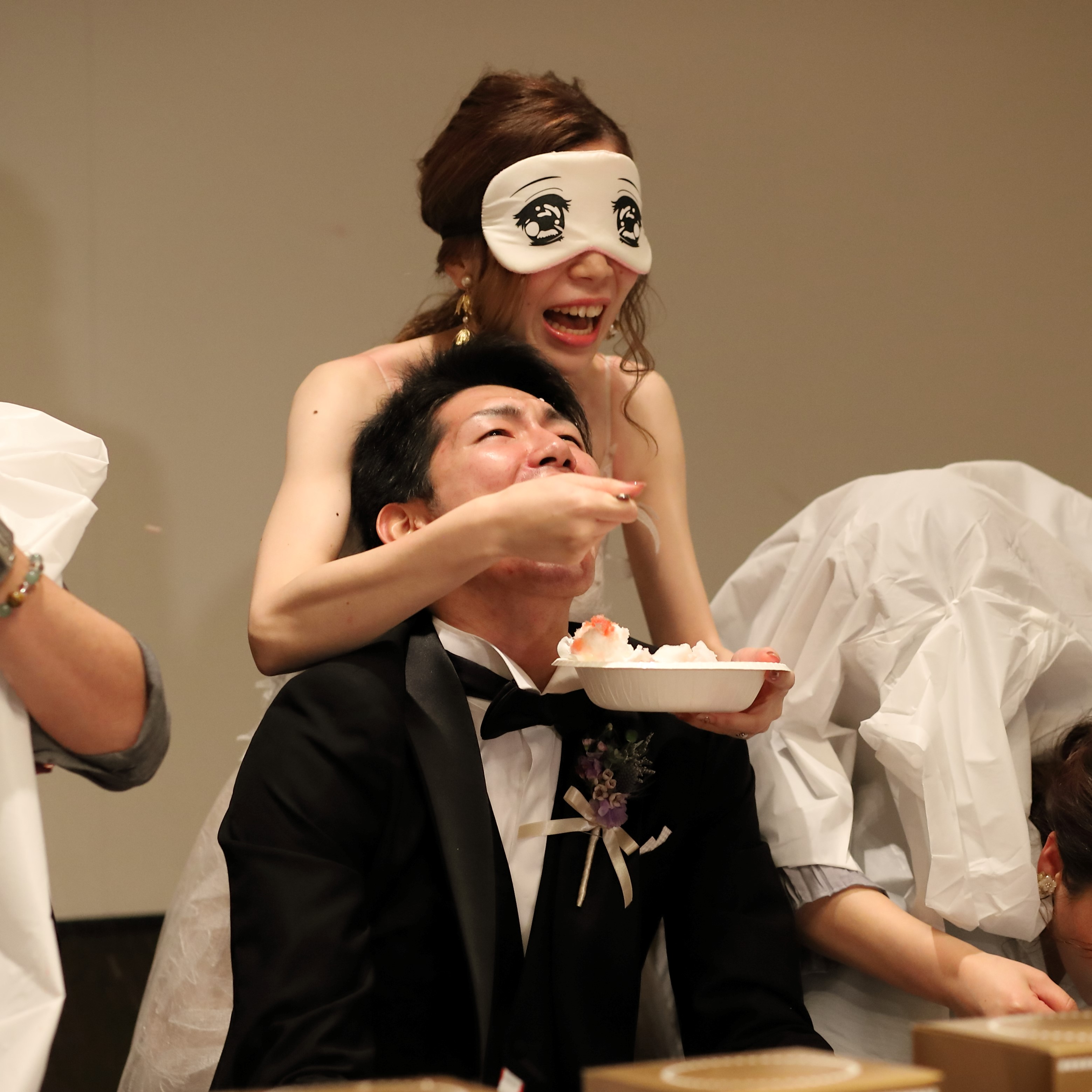 その後は、ゲストともお酒を酌み交わしたり、自由に飲んでもらうスタイルにしました。また、二人羽織早食い競争を行い、その優勝者を受付の時に予想してもらい、