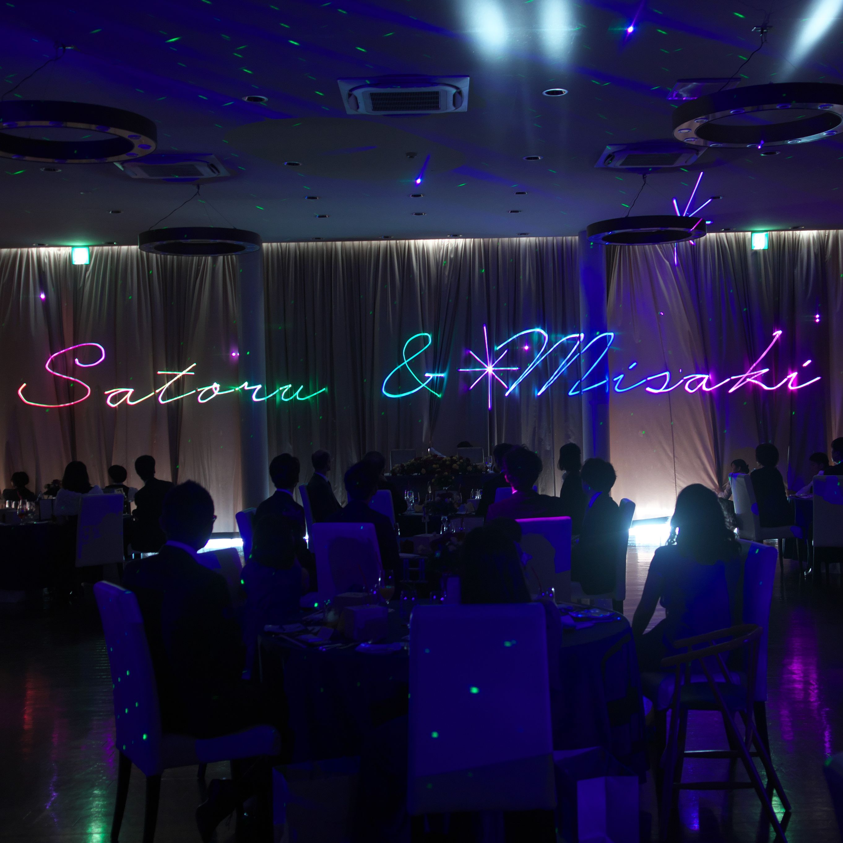 ◎披露宴の入場のときの演出でレーザーを使ったところ!見学の時に見せてもらって「これ絶対にやりたい!」と思い、打ち合わせの時も担当の方と意見を出し合って本当に理想の形で披露宴の始まりを演出出来ました!