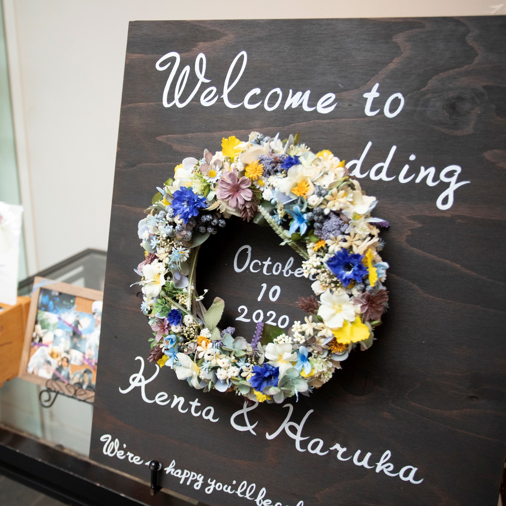 1からムービーソフトを学んでオープニングを作ったり、エコバッグとしても使えるブライダルバッグを作ったりしました。自分たちでは作れないものは、身内のエキスパートの力を頼りました。ウェルカムボードはフラワーアレンジの得意な新郎の母に、前撮りのカメラマンはプロで活躍している新婦の従姉に頼みました。結果的にこだわりが詰まったアイテムがたくさん出来ました。