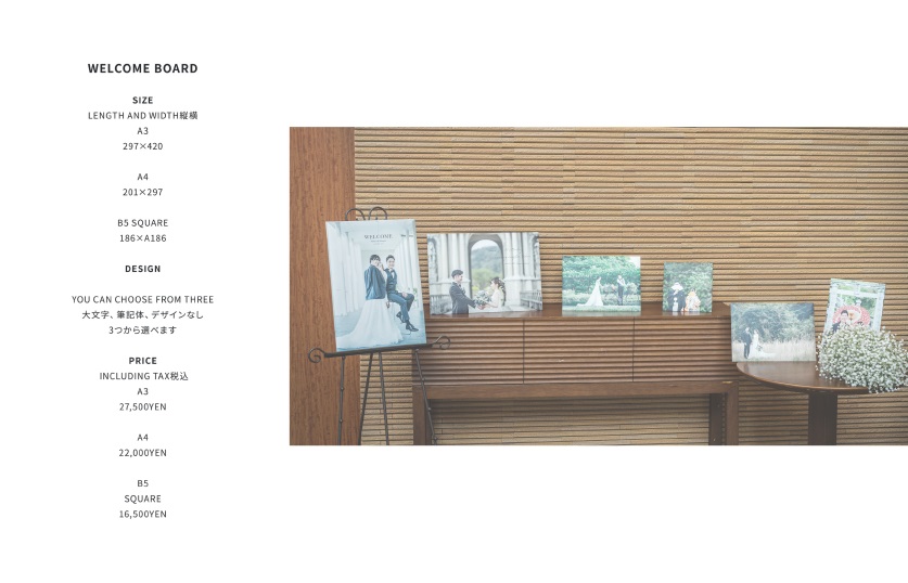前撮りのお写真や、おふたり自身でお撮りした写真も「ウェルカムボード」にすることが出来ます!