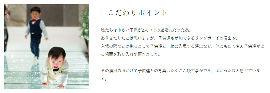 ご結婚式の様子や、ご新郎ご新婦様の感想をまとめたものです。