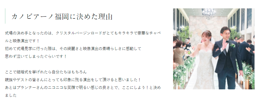 実際にカノビアーノ福岡でご結婚式で挙げられた卒花嫁様の