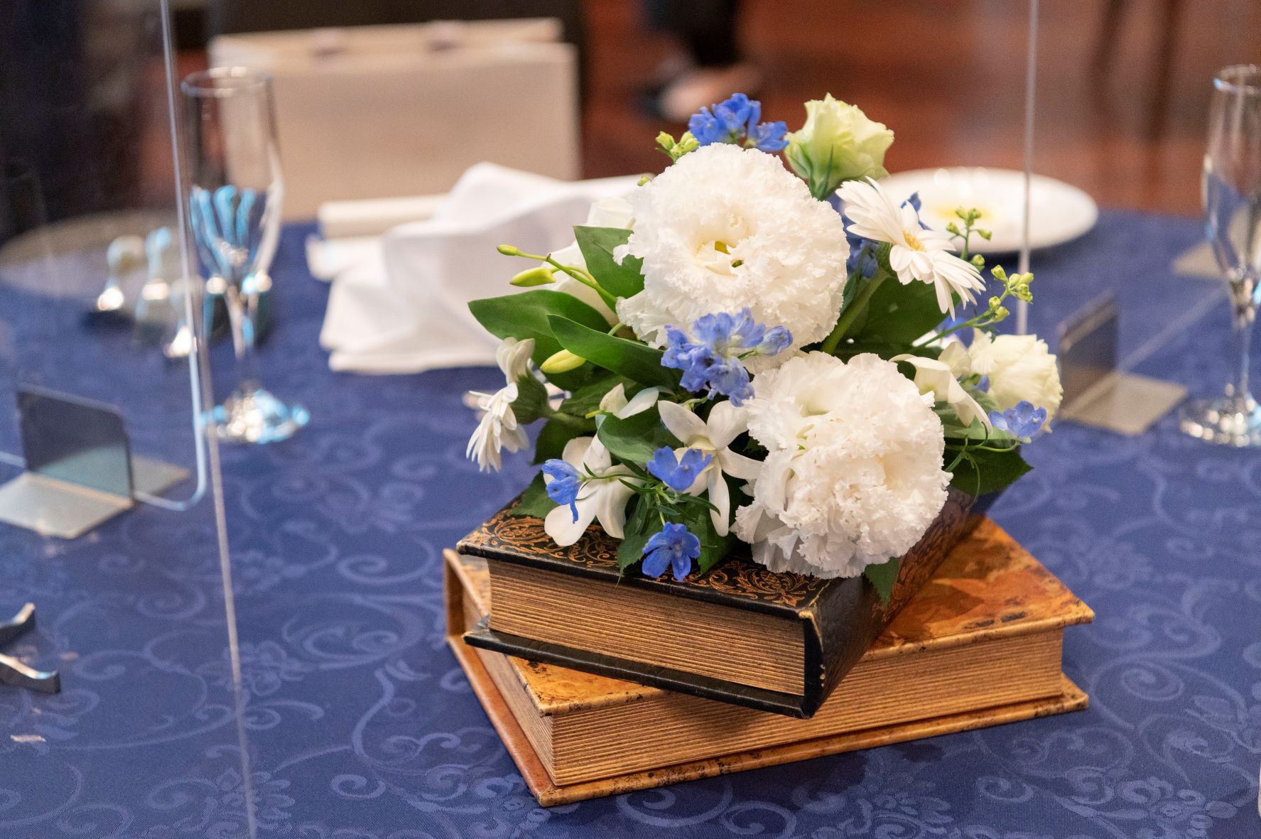 こちらは、ネイビーのクロスに、ルビーノの本を使ったアレンジ!