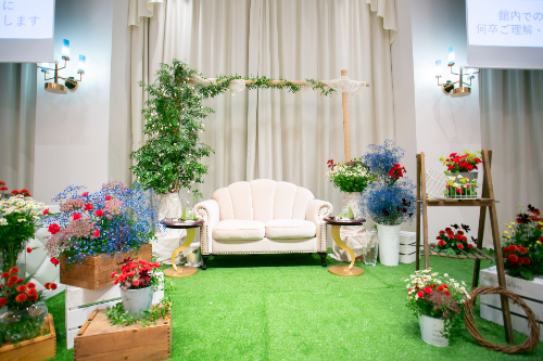 ソファ席ももちろん可能!芝生を敷いてナチュラルに、ラグを敷いておしゃれに…