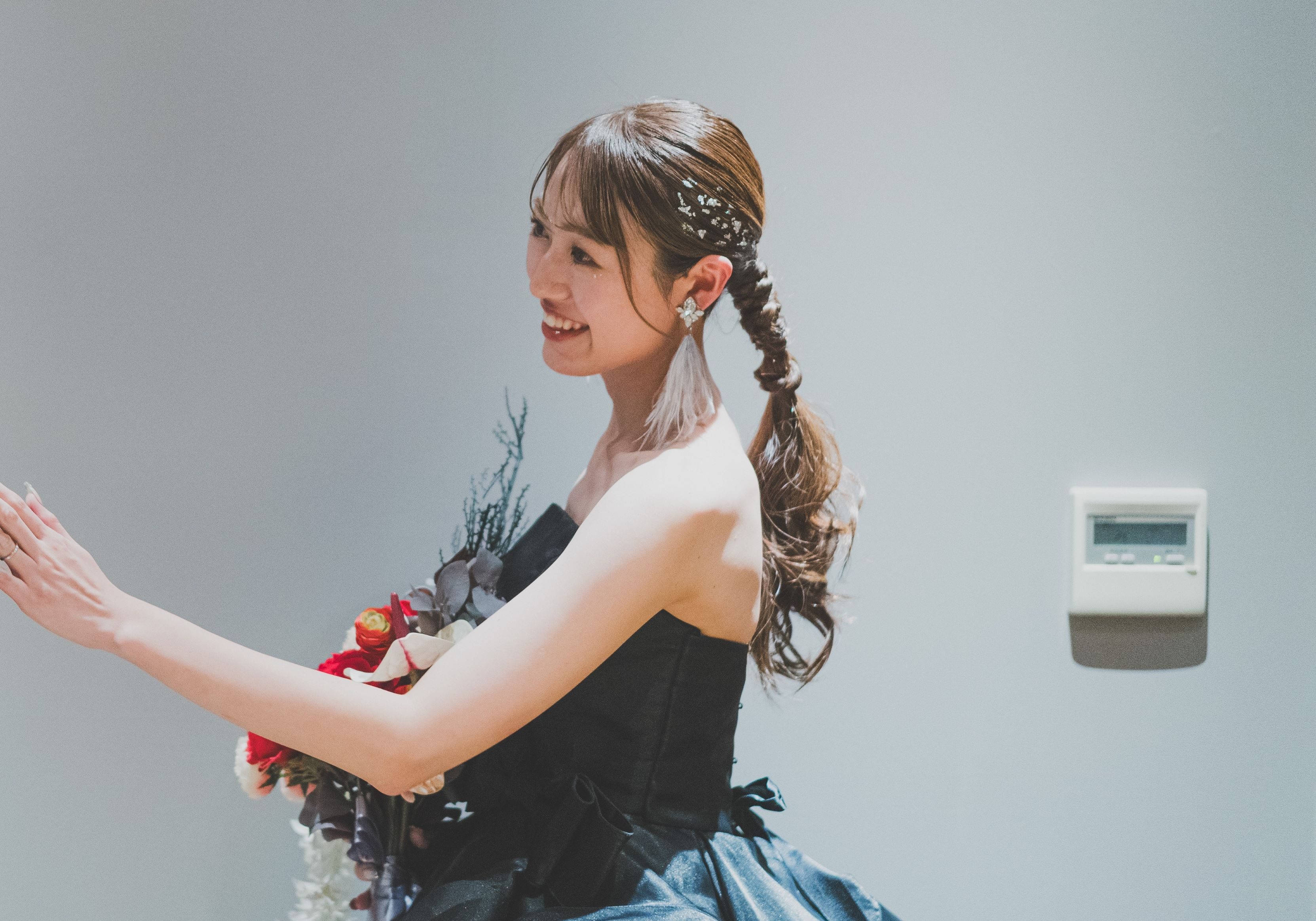 アクセサリーもお花のアイテムなど使用すると