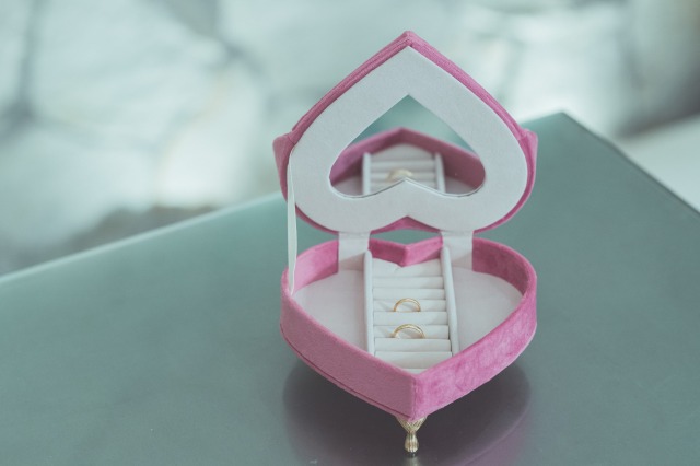 ピンクのハートのジュエリーボックスを