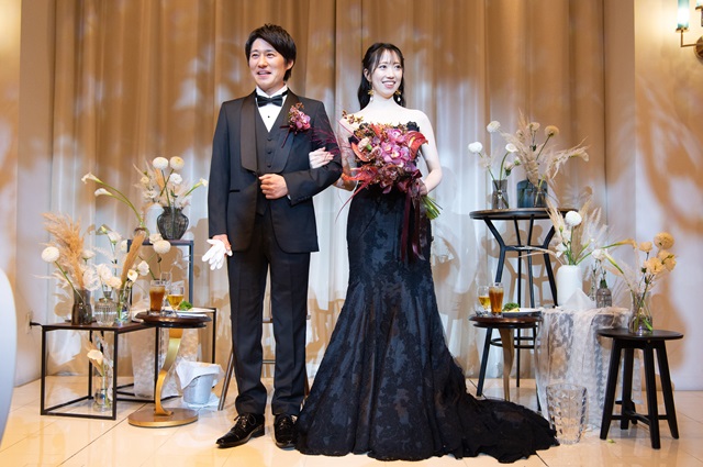 お色直しのカラードレスは黒のソフトマーメイドラインで