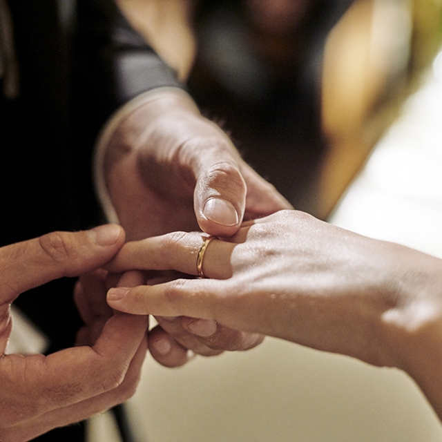 まるで宝石のように美しく輝く、カノビアーノ福岡のチャペル。美しい光と影が織りなすドラマチックな誓いのステージで、心に残る感動のセレモニーをお迎えください。
