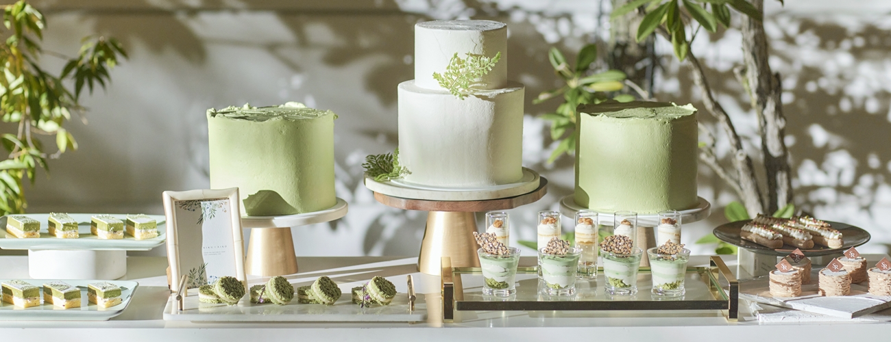 カノビアーノ福岡では、オリジナルのウエディングケーキやデザート、そしてゲストへのうれしいサプライズとなるデザートブッフェをご用意しております。色とりどりのケーキ&スイーツが奏でる幸せな時間を、どうぞお愉しみください。
