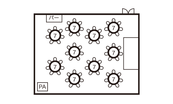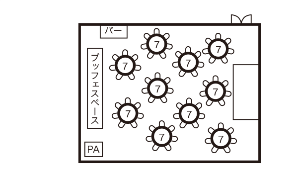 大人数でご利用いただける2タイプのパーティー会場をはじめ、受付として使える広いラウンジ&ゲストルームを完備。ワンフロア丸ごと貸切にできる洗練空間で、ゆったりとパーティーをお愉しみいただけます。また、プロジェクションマッピングなどの映像演出をはじめ、ラウンジでのドリンクサーブなど、パーティーを盛り上げる多彩な演出にも対応できます。