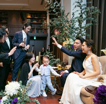 ゲストと一緒になって楽しみたかったので、ゲストテーブルと高砂との距離感をなくして気軽に高砂に来て頂けるようにソファ席にしました!