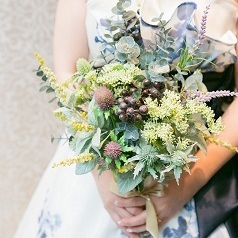 装花もガーデンウエディングを思わせるようなグリーンいっぱいのイメージを伝えると、