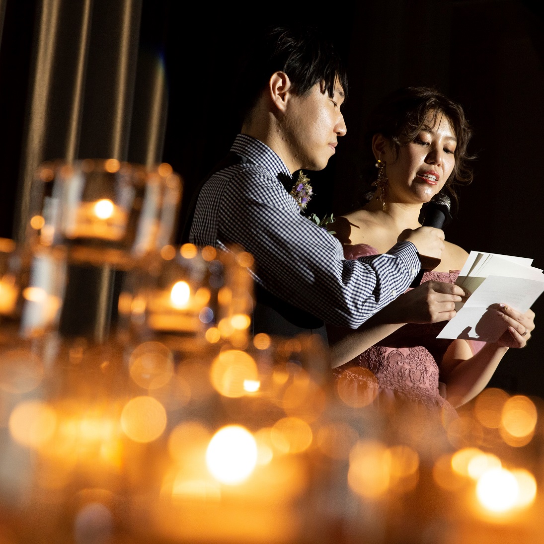 私たちの結婚式を作り上げるにあたり、コロナウイルスの流行という大きな壁にたくさん悩まされました。結婚式を行うことの葛藤や、行うにしても皆様に安心して楽しんでいただくために、感染対策の徹底やプログラムの変更などを行ないました。安心して全員が笑顔で結婚式を終えれるよう沢山のアイデアを出し合って対応してくださったプランナーさんにはとても感謝しています。