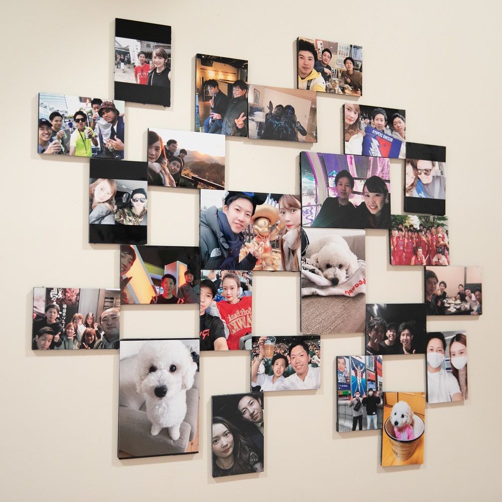 ウェルカムスペースでたくさんの写真と風船、LED、お花で派手にかざれたところ