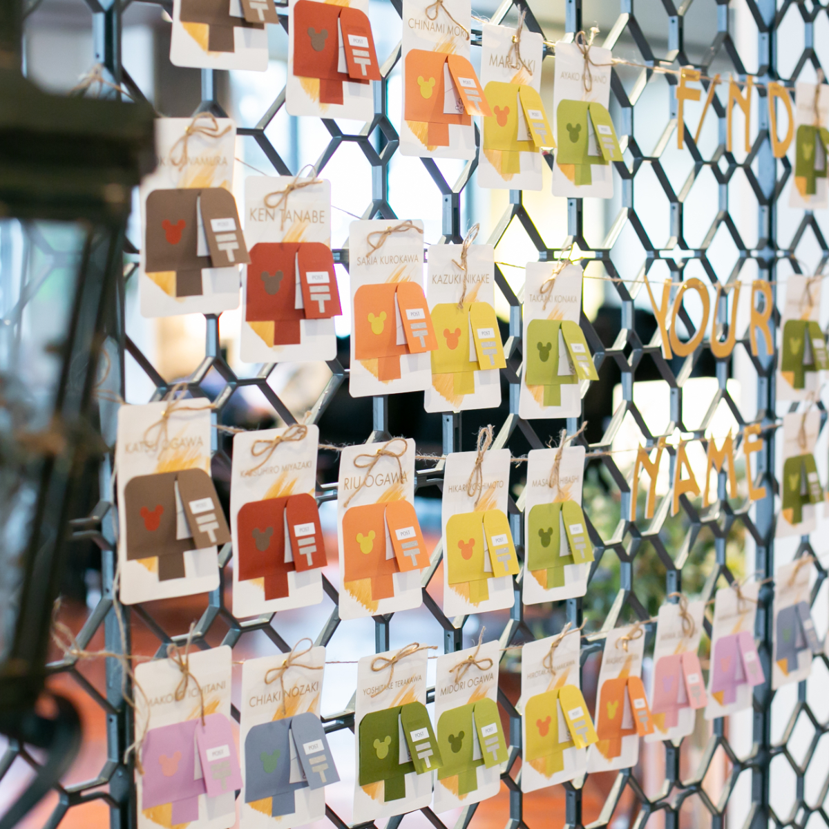 私たち2人の好きなものをモチーフにしたふたりらしい結婚式になるように、アイテムをたくさん揃えました!また、私たちが選んだ落ち着いた雰囲気の会場に馴染むようにペーパー類やブーケも工夫して合わせました。できるものはすべて手作りしたことも私たちのこだわりポイントの1つです!