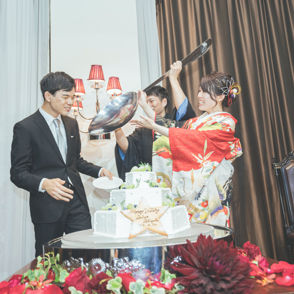 式場見学に参加した際、会場スタッフの皆様一人一人から親身な接客対応をいただき、「おもてなし」を披露宴のテーマに考えていた私たちにとって1番適していると思いました。