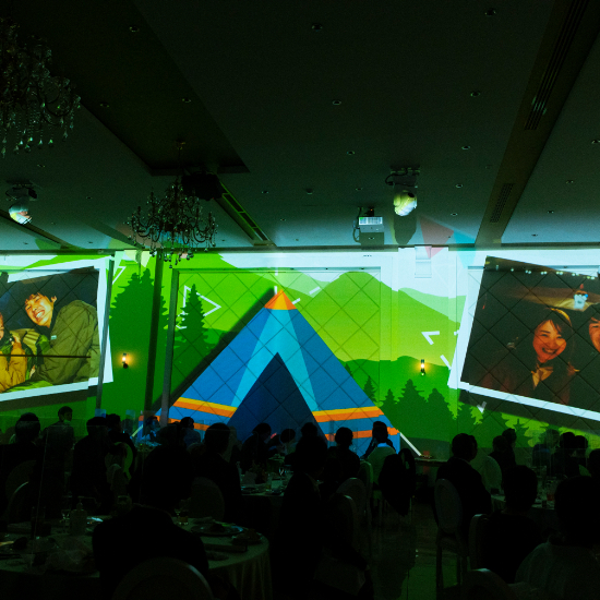 自分たちの趣味であるキャンプをたくさん取り入れた式にしました。オープニングムービーやマジックウォールにはキャンプ要素を取り入れ、ウェルカムスペースには実際に使用しているテントなどを飾る事ができ、とても自分達らしさ溢れるスペースにする事ができました。またウェディングケーキは切り株ケーキにアレンジしていただき、斧で入刀するという特別な演出も行えました。結婚証明書ではレゴブロックを用いたゲスト参加式にし可愛い証明書を作る事ができました。