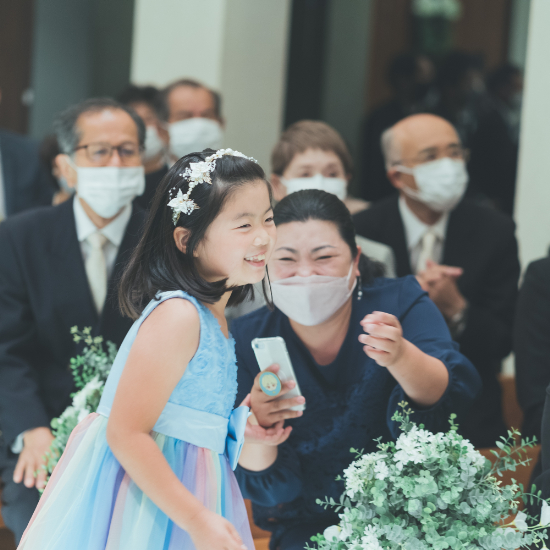 またゲストの方が緊張せずに全員が楽しめるように友人からの手紙や余興はなくし、歓談やお色直しのドレス色当てゲームを開催しました!