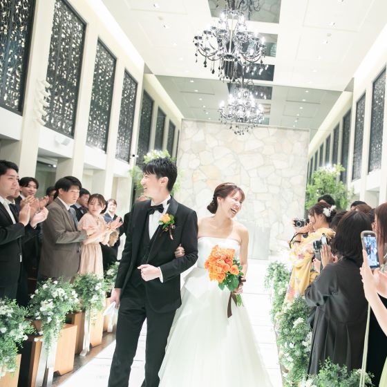 床一面がキラキラと輝くバージンロードはとても美しく、映像を使った演出を見せていただきましたが、参考映像にも関わらず大変感動し、自分たちもこのような演出で結婚式をあげたいと思いました。