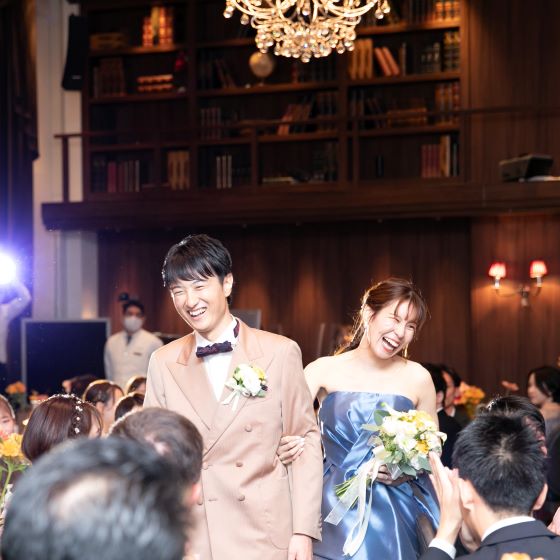 ルビーノとアッズーロは全く異なる雰囲気でしたがどちらも魅力のある会場でした。最終的にルビーノに決めた理由は、他の会場では見たことがないような会場の作りに入った瞬間からワクワクさせられ、座ると落ち着く場所であり、みんなとここで楽しい時間を過ごしたいと思ったからです。料理を美味しく食べられる最大の人数を収容するなどレストラン発祥である式場としてのこだわりを感じました。