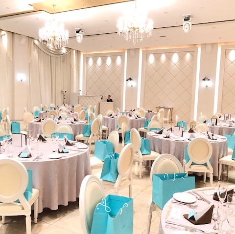 また会場を空に見立てる為、アッズーロの白を活かし水色を入れて