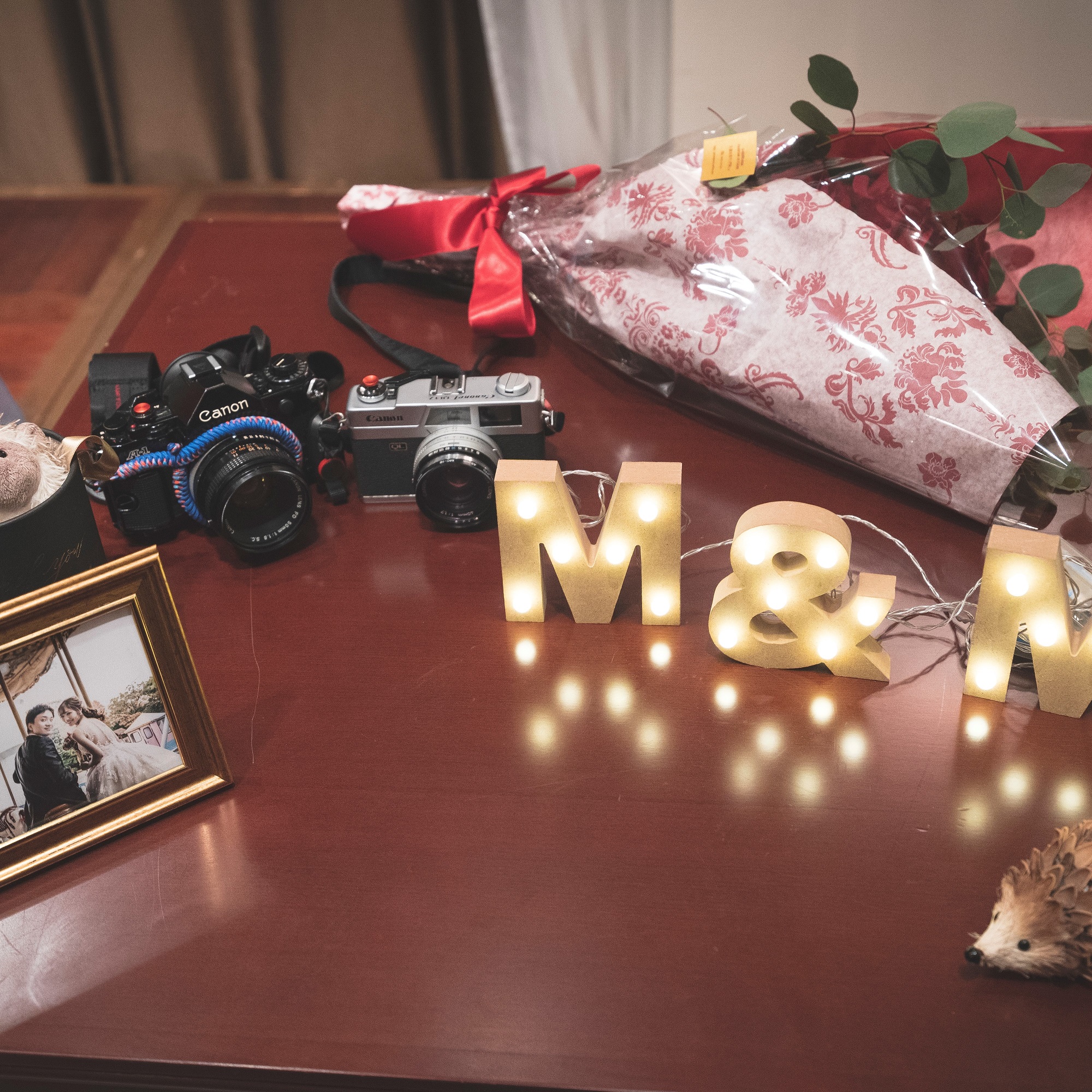 お互いカメラが趣味だったのでカメラをたくさん使った演出、飼ってるハリネズミをモチーフとしたグッズの装飾、料理や乾杯酒へのこだわりでした。