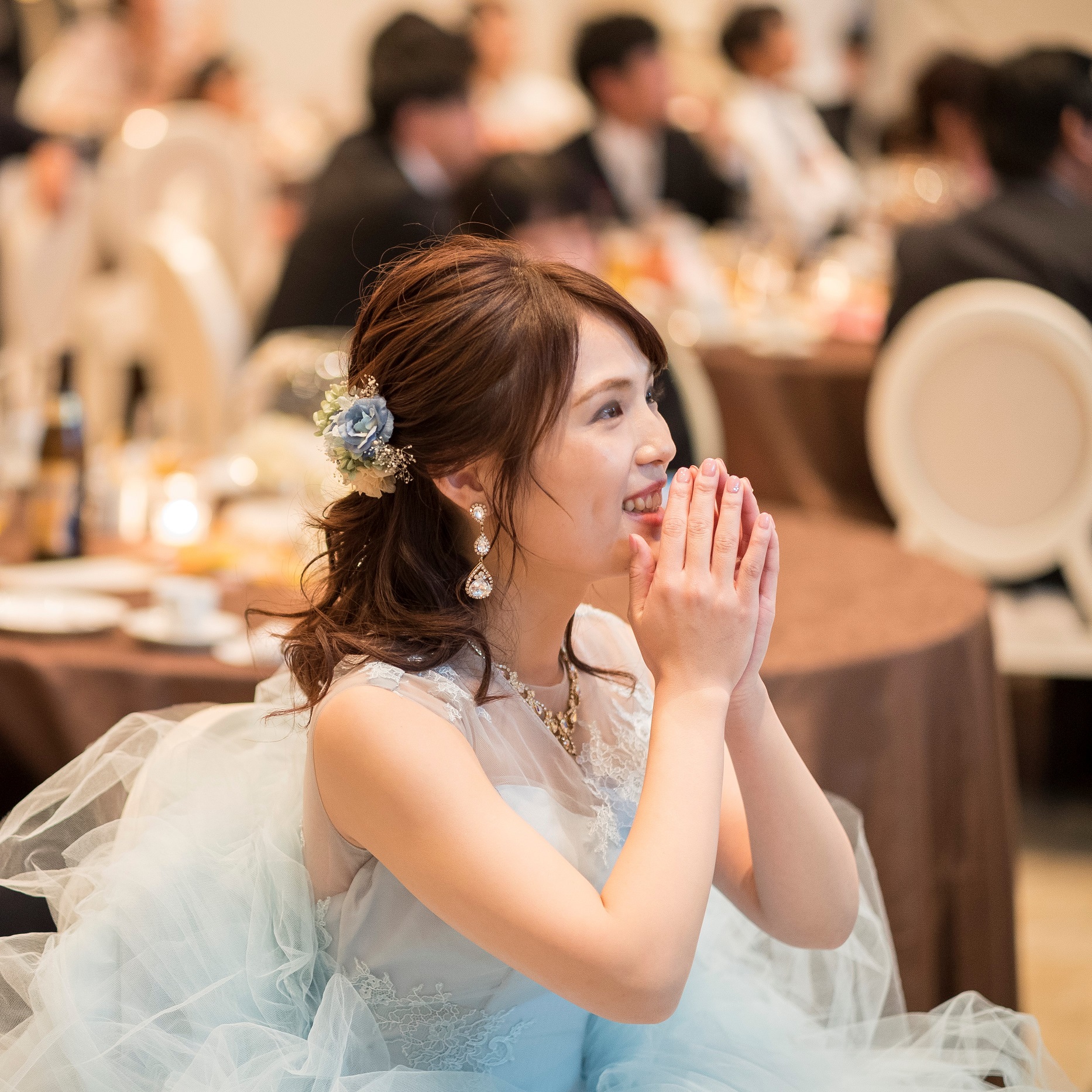 当日になっても全く実感が湧いていませんでしたが、メイク中にもうゲストの方が来られてますよと教えて頂き、早くみんなに会いたい!という思いが強くなりました。