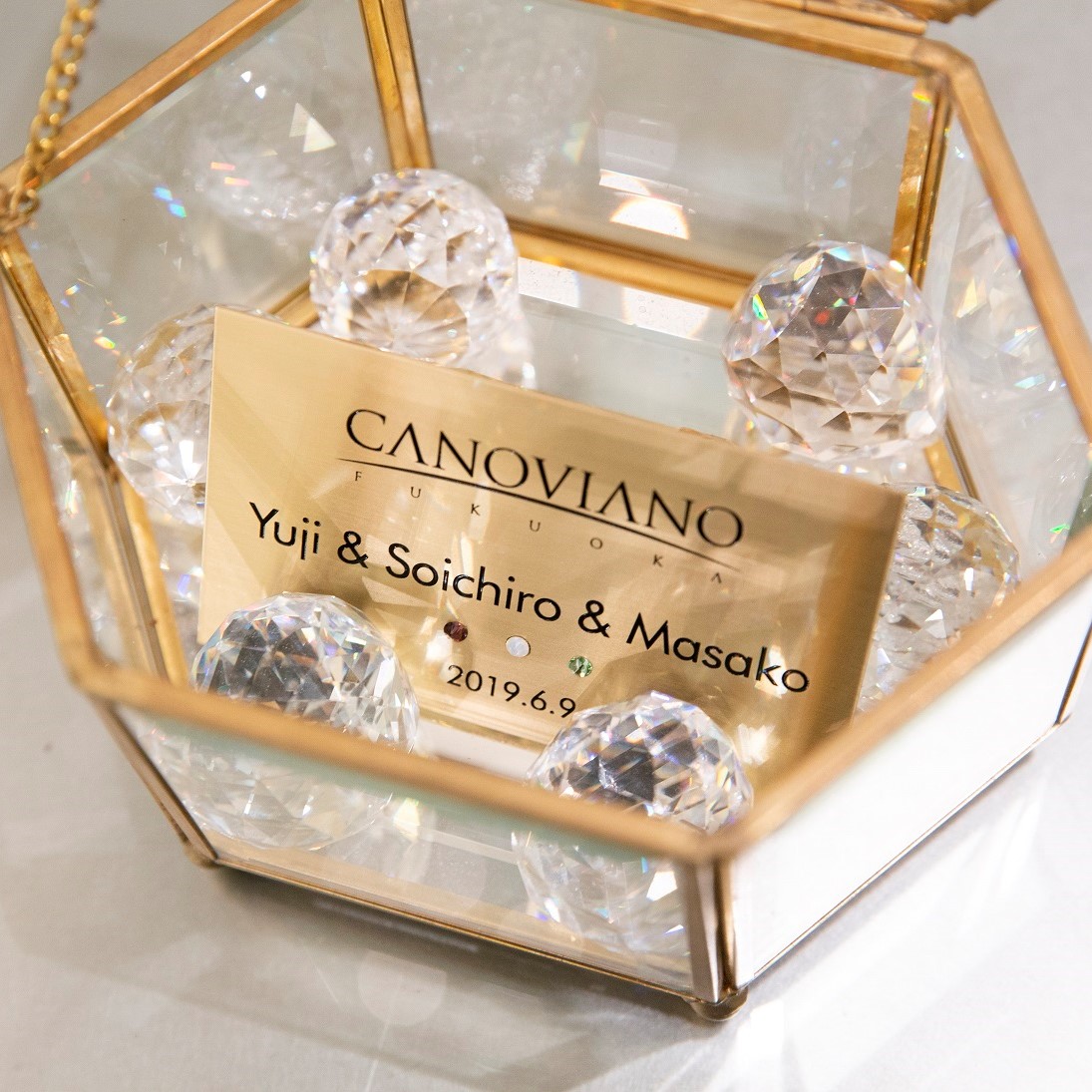 カノビアーノさんで式を挙げたら誕生石入りのプレートを作って式場に飾ってくださります。大切な日にはプレートを見て、美味しいお料理をいただき、式の日を思い出して、また幸せな気持ちになりに伺いたいと思います。