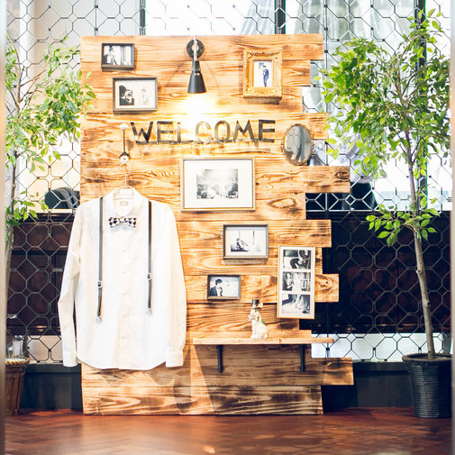 こだわる中で楽しい思い出になったのは、アパレル販売員の新郎と材木屋の新婦の職業を融合させた大きなウェルカムボードをたくさんの人に協力してもらい作ったことです。