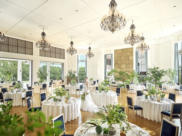 装いを一新した「フォレスト」は、明るくナチュラルなリゾートテイストのバンケット。天井高7m、180名収容のスケールは圧巻です。大きな窓の外にはテラスやガーデンが広がり、開放感とくつろぎに満ちたひとときをお過ごしいただけます。