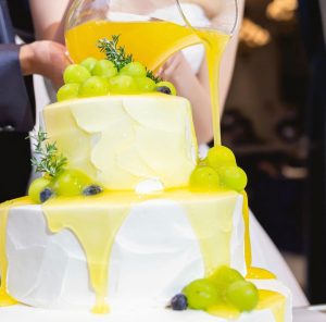 おふたりがケーキにナイフを入れるはじめての共同作業。