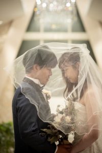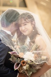 ベールに入ってお写真を撮ることでおふたりの横顔が美しく、そして繊細に