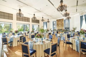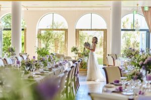 お花とテーブルクロスが会場全体のカラーバランスを作ります。