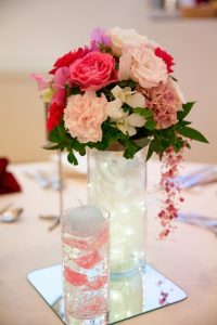 おふたりのお座りになるメインテーブルや、大切なゲストの皆様のお席のゲストテーブルには色とりどりの装花がならびます。