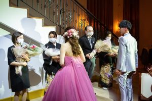 結婚式の結びには親御様への感謝の想いを手紙と一緒に花に託して届けたいと、贈呈の花束をご用意されました。